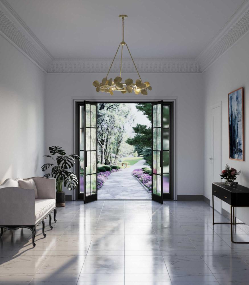 Natural, whimsical leaves and sophisticated lines fits beautifully in transitional, luxe, and modern organic rooms