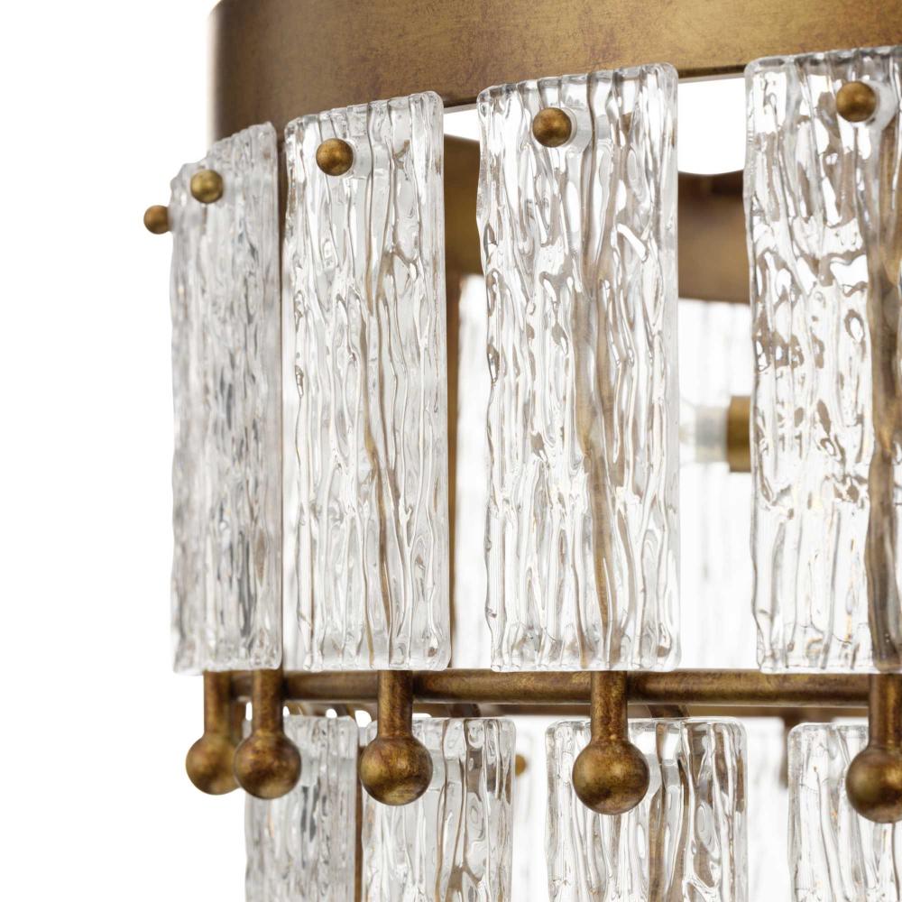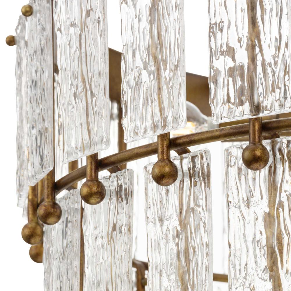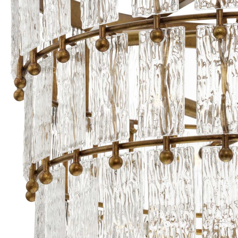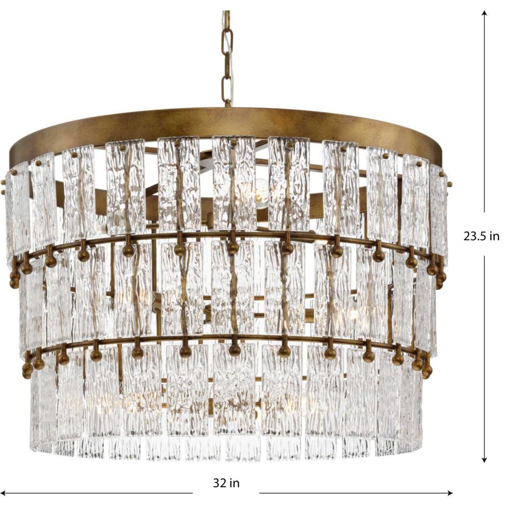 Add glamour to your home with the elegant Chevall Collection. Layers of distinctive artisanal glass encircle a richly burnished, Gold Ombre frame, creating a chandelier that offers a luxurious lighting experience. Glimmering illumination creates a sparkling ambiance that fills the room. This fixture is part of the Progress Lighting Design Series, a lighting collection offering fashionable styles and affordable luxury lighting for the home.