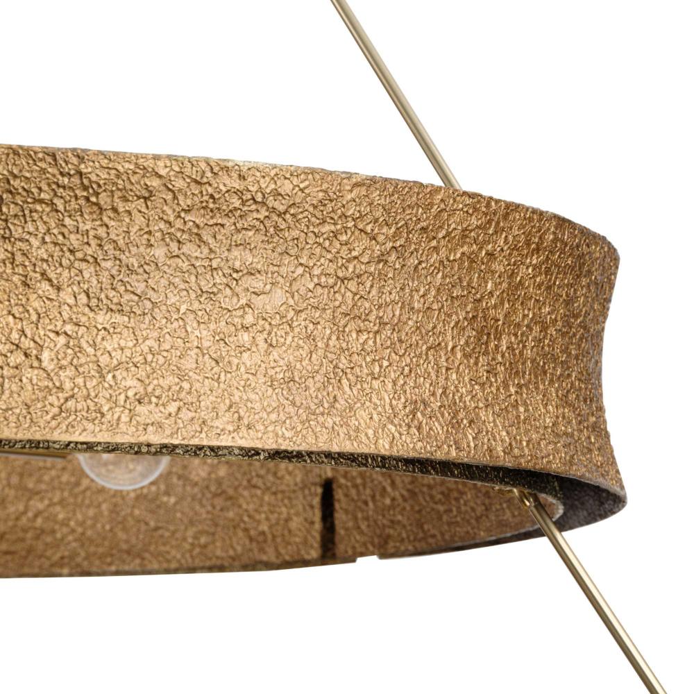 The light's artisanal, textured elements offer a vintage feel in contemporary rooms