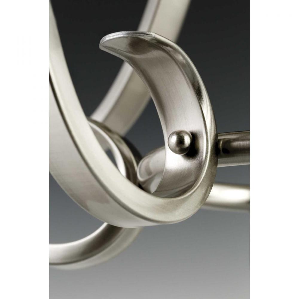 Plated Brushed Nickel finish.;Provided 3-light downlight in an oversized, bell-shaped glass bowl.;Distinctive ebbing and flowing of flat steel arms and scroll accents.;Etched white glass.