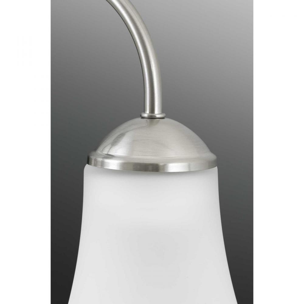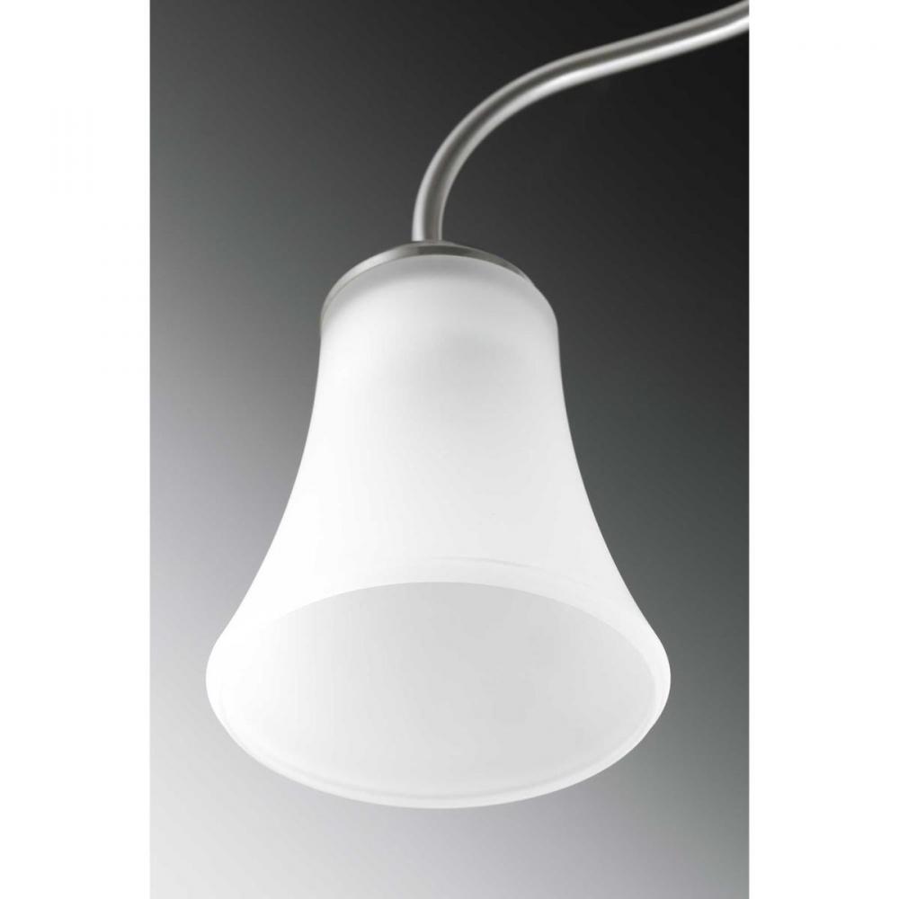 Features traditional details and graceful lines.;Provides modern elegance to any interior.;Etched glass shades.;Brushed Nickel finish.