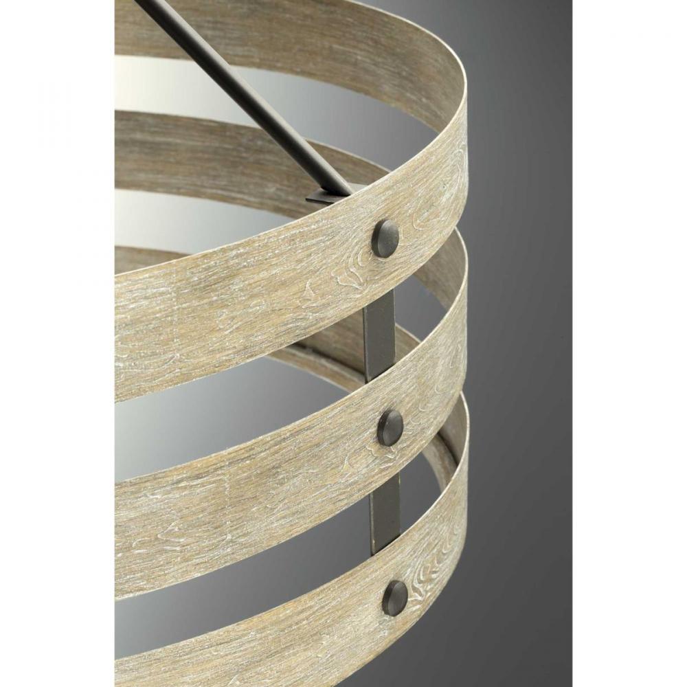 Three circular bands wrap together to create an open design in Gulliver. Hand painted to emulate weathered driftwood, the one-light mini-pendant's Graphite frame is accented by smooth knobs and encases exposed bulbs. The wood grained texture complements rustic farmhouse home decor.
