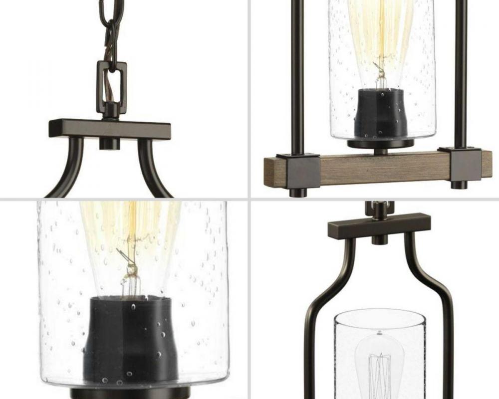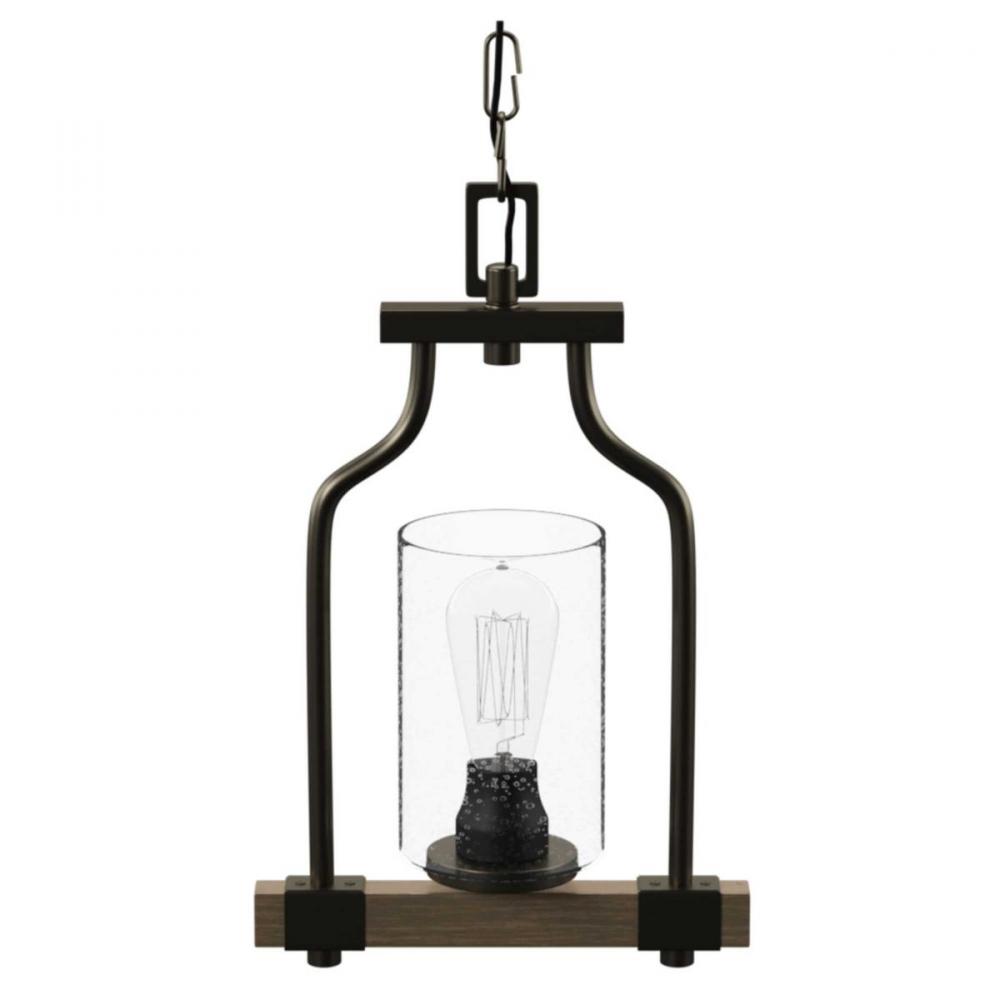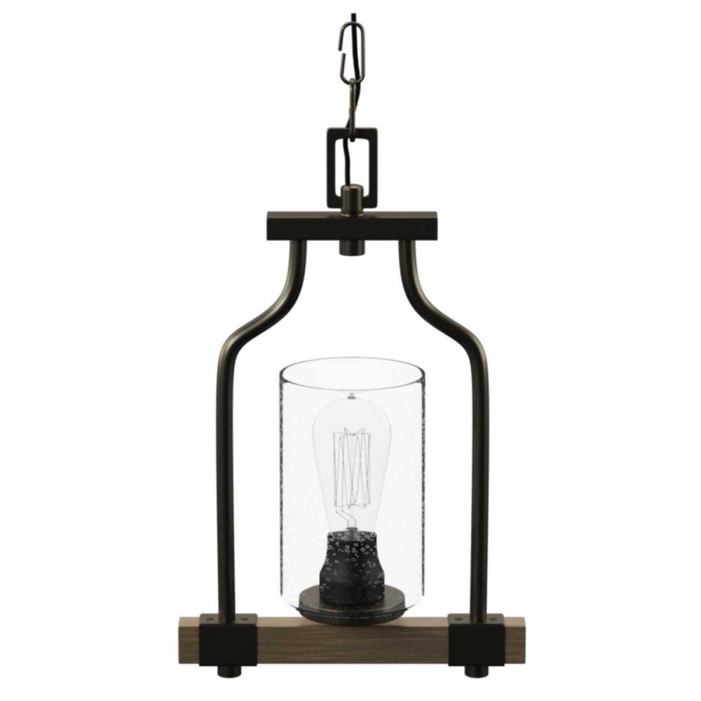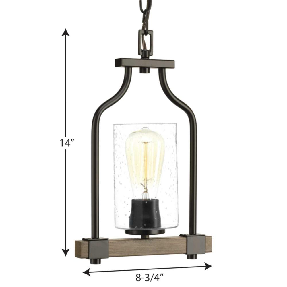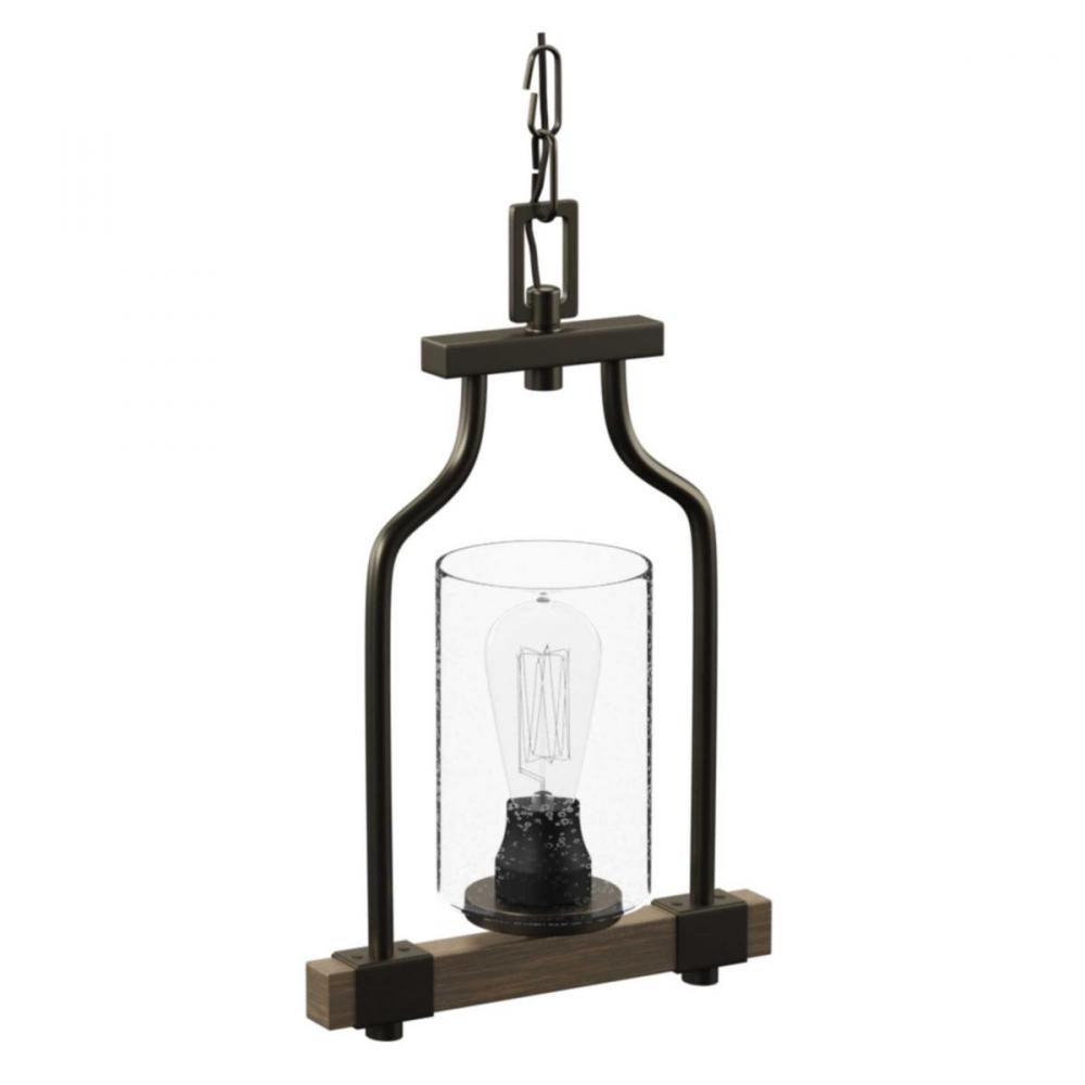 Rustic and vintage decor can transform your home into a nostalgic retreat reminiscent of rural farmhouses. Exposed iron details and a faux-painted wooden plank support an artful, clear, seeded glass shade. Combine with vintage-style light bulbs to create a romantic focal point for any room. One-Light mini-pendant.