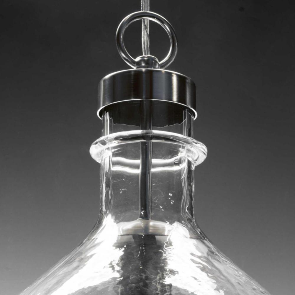 Inspired by a beautiful wine cask design;Zin pendants are artfully formed from one large piece of glass;Brushed Nickel finish with textured clear glass;Pendant uses one 100W max. medium base lamp (sold separately);Create a customized look for Rustic Farmho