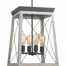 Inspired by the traditional X-braces found on farmhouse doors;The four-light foyer pendant features a faux-painted wood frame enclosing a four-light cluster;An obvious choice for a foyer, in a powder room, over a breakfast table, or displayed in pairs over