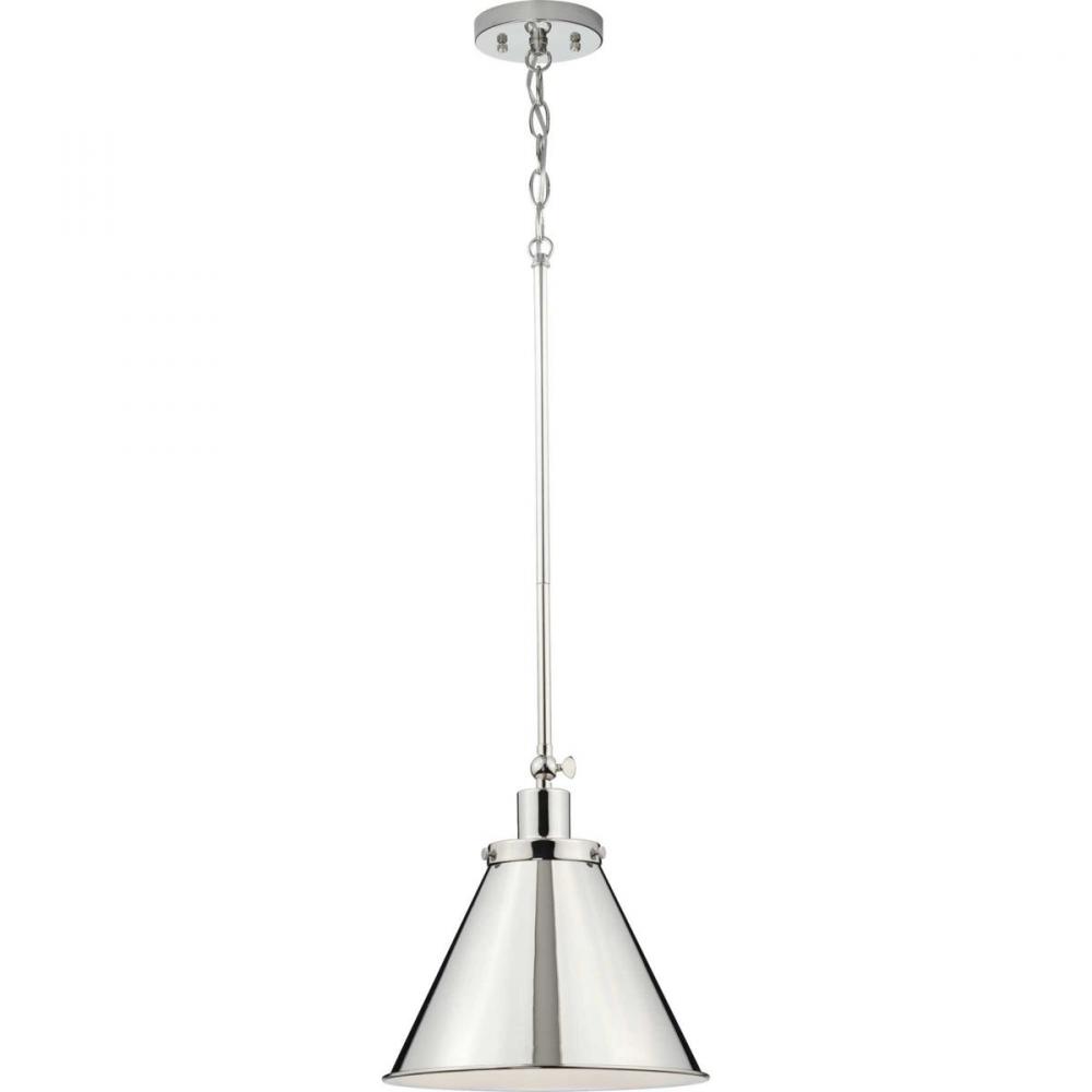 Embrace stylish simplicity with the Hinton Collection 1-Light Polished Nickel Vintage Hanging Pendant Light. The circular ceiling plate and industrial light base are coated in a crisp polished chrome finish. A light source glows from inside a polished nickel shade that provides effective task lighting wherever focused illumination is called upon.