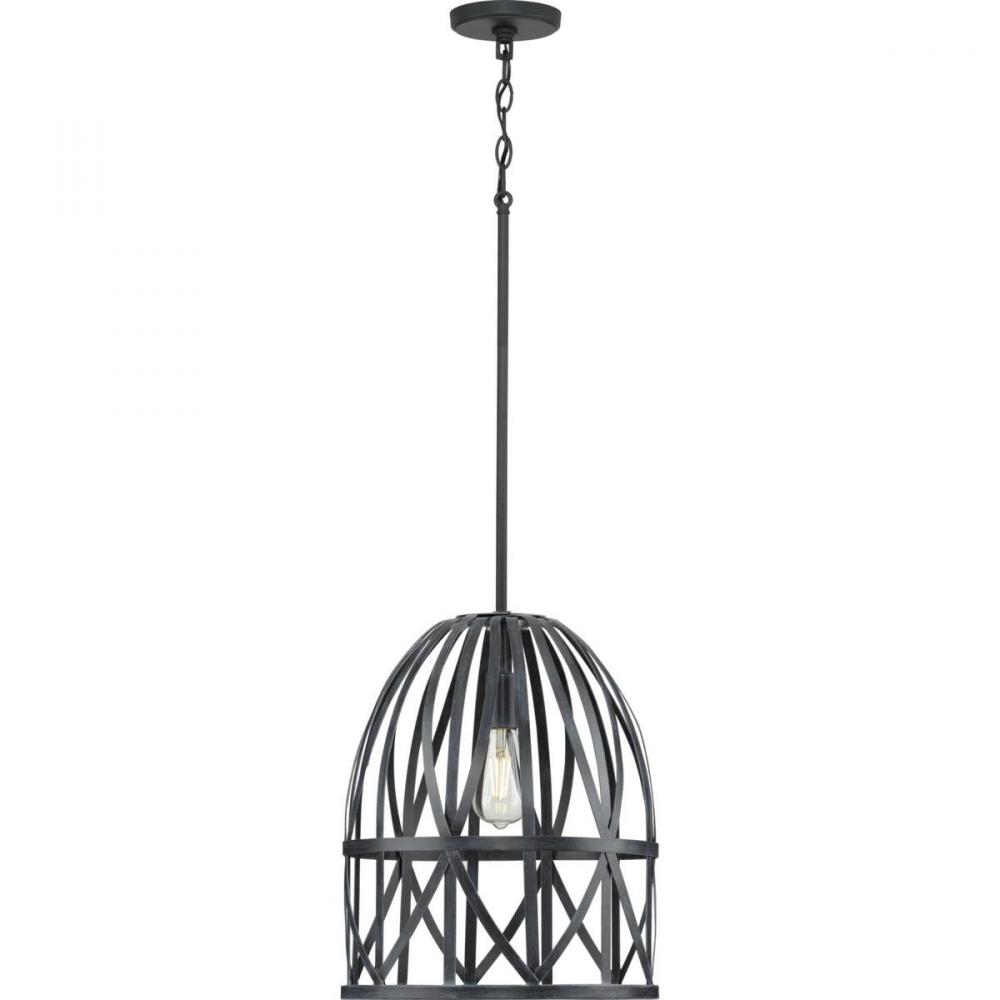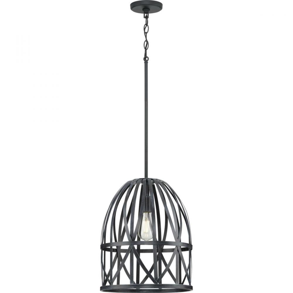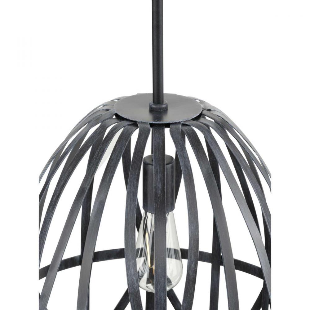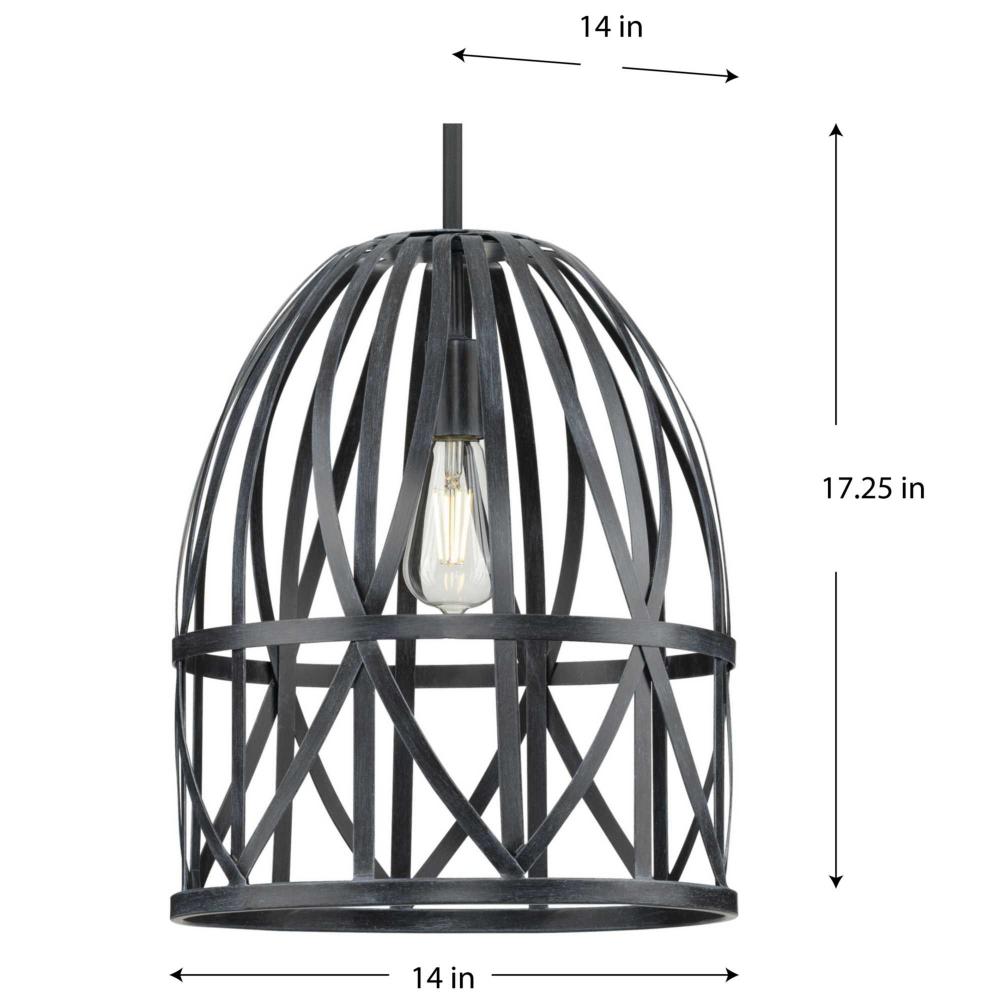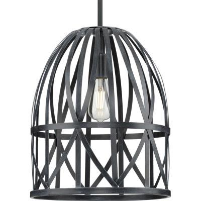 Add an eye-catching lighting design to your home décor with the Chastain Collection. The pendant's airy frame draws upon the handcrafted artistry of basket-weaving to offer a graceful silhouette. The artisanal style is enhanced by a cerused black distressed faux wood finish with a textured black stem.