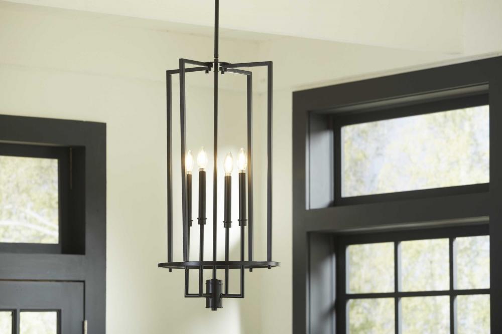 The Elara foyer light features a slender, chic form captured in an elongated frame, making it ideal for foyers, great rooms and kitchens;Its classically modern style is perfect for new traditional and transitional interiors;A classic matte black finish e