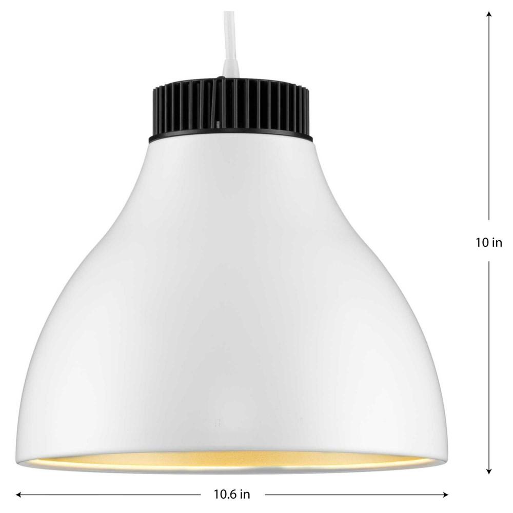 Give interiors an industrial vibe with Radian LED pendant, ideal for kitchens, breakfast nooks and bar areas;Add a boost of style to any modern, contemporary, and mid-century modern style settings;Dome shaped pendant is coated in a soft satin white finish