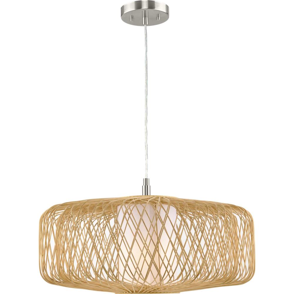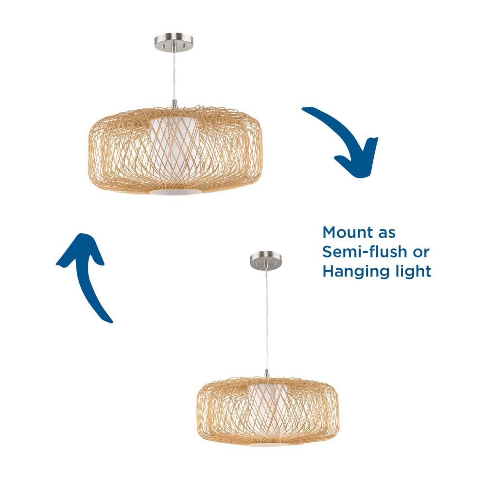Handcrafted rattan shade is ideal to complement modern organic and globally influenced décor.
