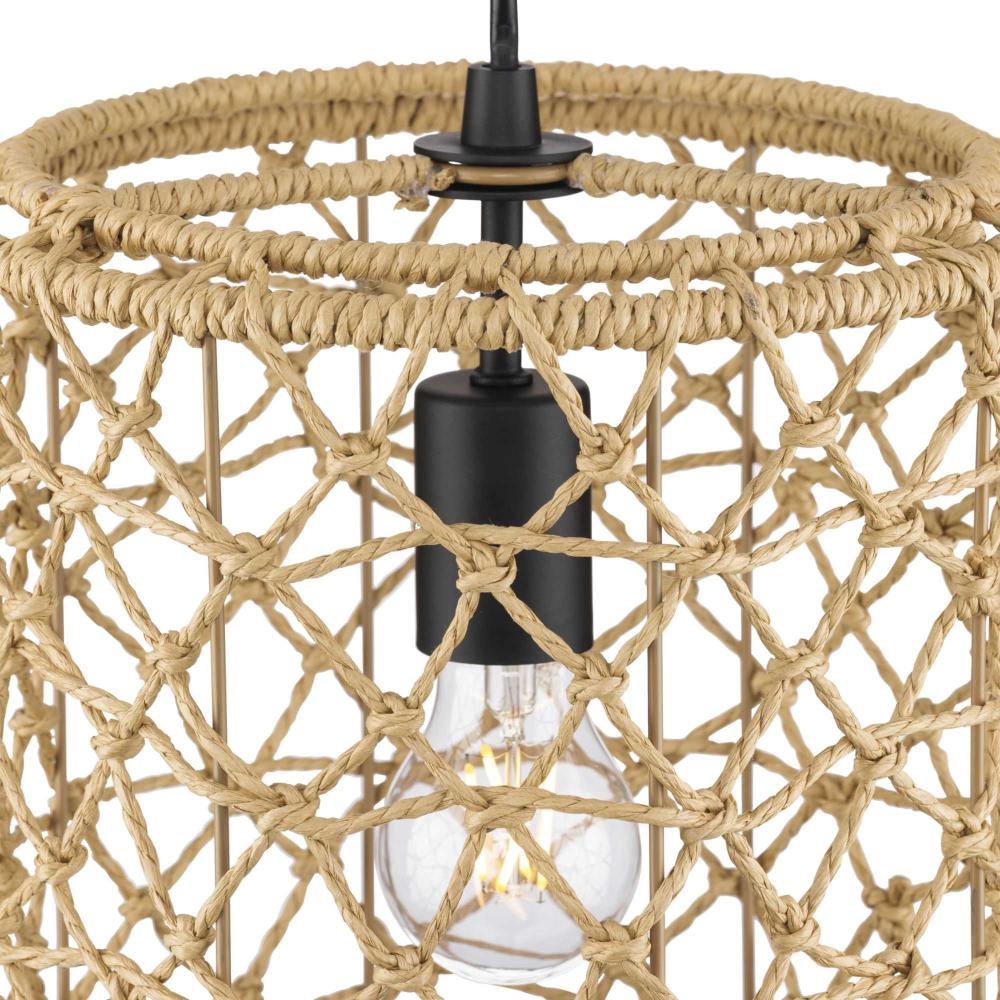 Chandra is handwoven by artisans into a casual, artful lantern form. This beautiful luminaire's organic style complements global, coastal and transitional settings. Knotted string in an open airy pattern filters light beautifully to provide relaxed warmth and texture to kitchens, breakfast nooks and bedrooms. This fixture is part of the Progress Lighting Design Series, a lighting collection offering fashionable styles and affordable luxury lighting for the home.