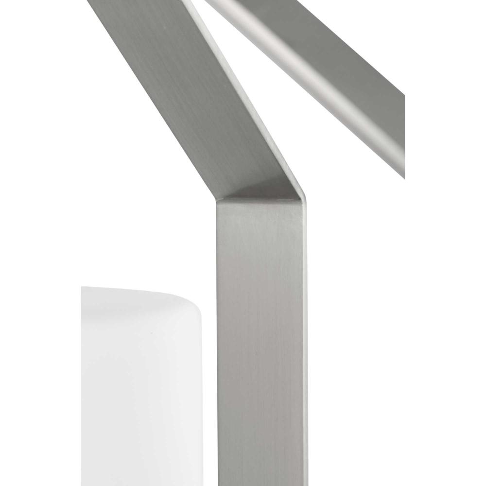 A lovely brushed nickel frame define the fixture's distinct, angular silhouette
