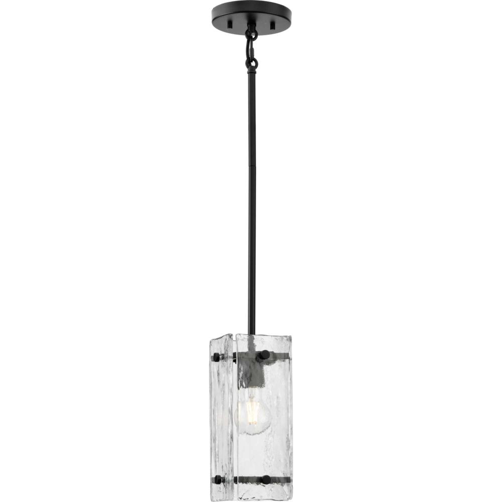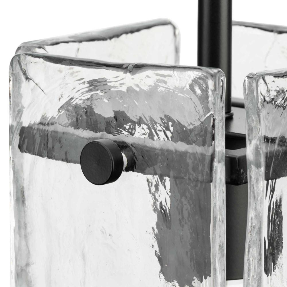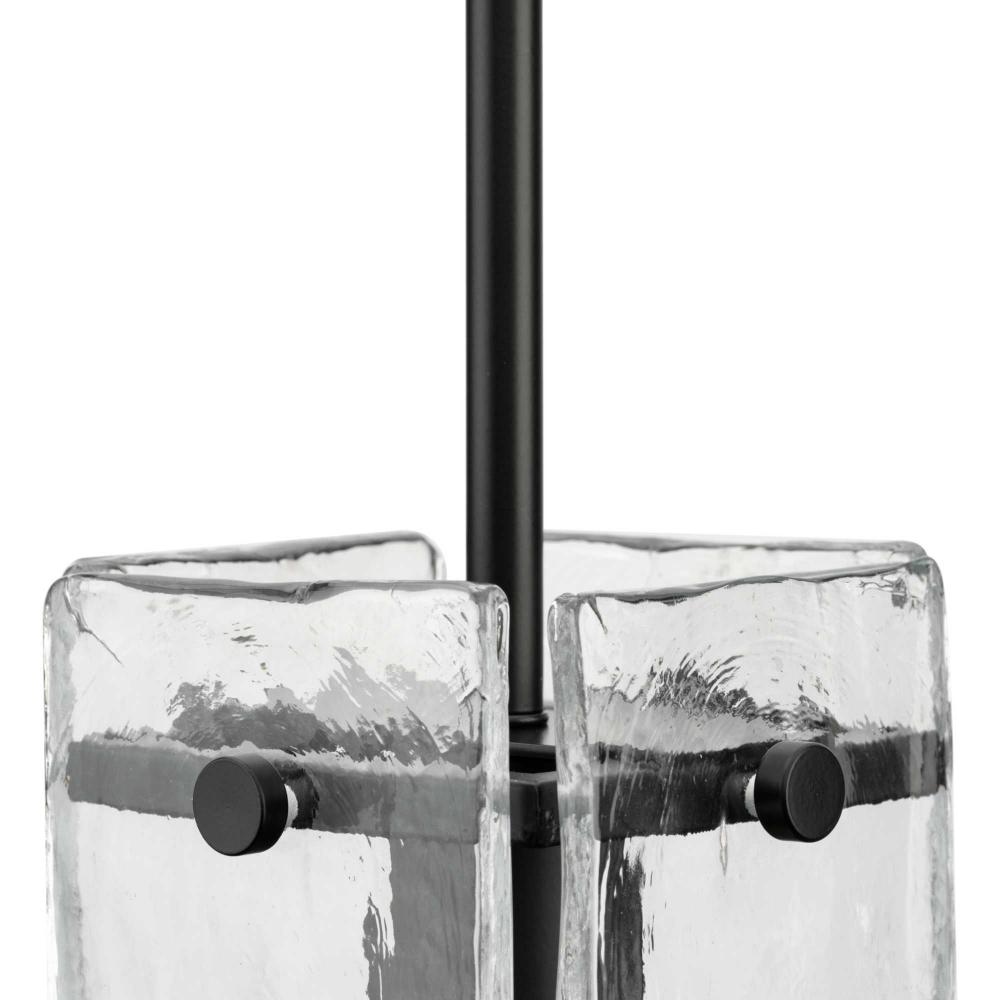 Indulge your artistic sensibility with luxurious lighting from the Rivera Collection. Softly filtered illumination through an icy display creates an otherworldly effect. Linear segments in rich, deep black tones frame billets of handcrafted, clear textured glass in a modern craftsman-inspired design.This fixture is part of the Progress Lighting Design Series, a lighting collection offering fashionable styles and affordable luxury lighting for the home.
