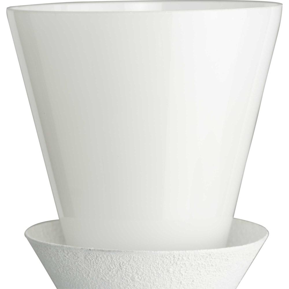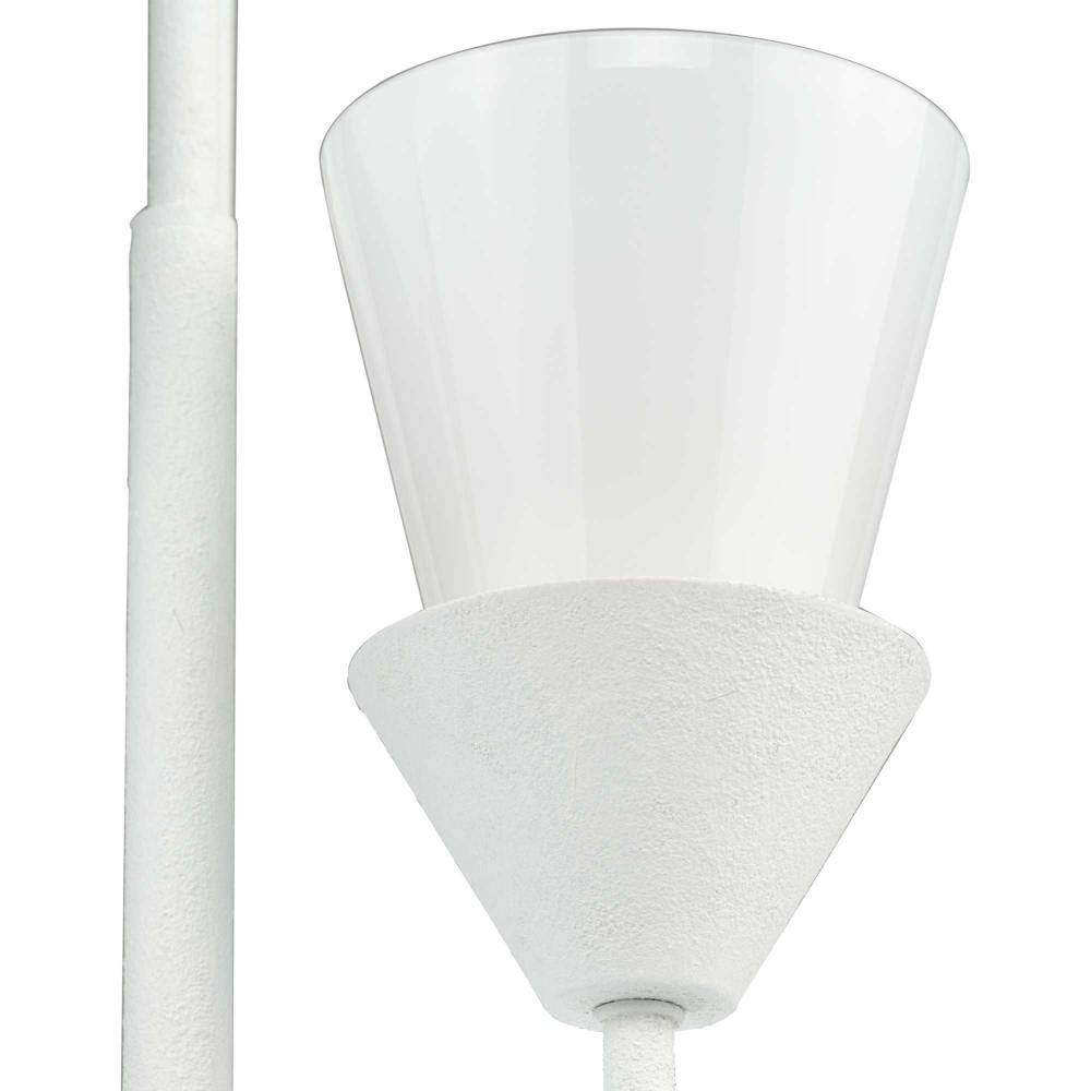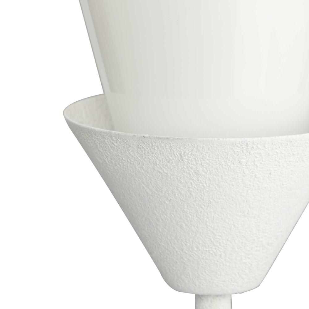 A white plaster finish emphasizes the light's conical design
