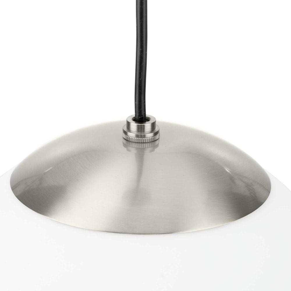 Embrace a statement-making lighting design with the Atwell Pendant Light. A light source glows from within an opal glass globe shade, fostering a soft and enduring design. The metal cap and light base are coated in a beautiful brushed nickel finish that accentuates the design's modern aesthetic. The light hangs from a flexible black cord that can be adjusted for height to meet your unique design needs.