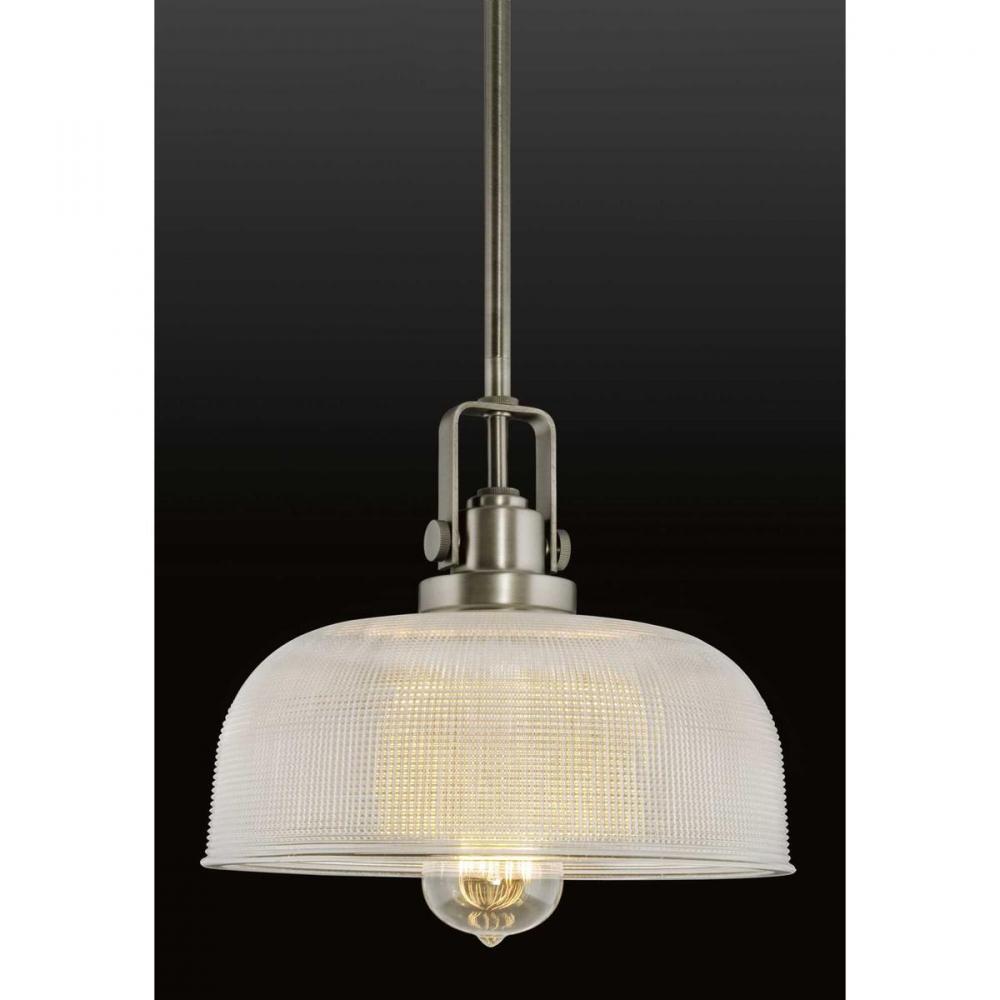 The Archie Collection brings a vintage, industrial flair to interior settings. The collection’s distinctive double prismatic glass adds visual interest as its crisscross pattern comes to life when illuminated. The distinctive finely crafted strap and knob detail adds authentic industrial flair. This one-light pendant is perfect for kitchens, dining rooms, rec room and anywhere pendants could be used. Antique Nickel finish.