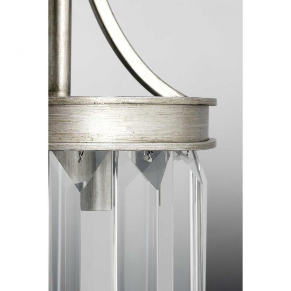 Elements that sparkle create an instant statement within the home.;Prismatic glass pendants offer a livable luxury feel.;Architecturally- styled frame in Silver Ridge finish.;Includes one 6", four 12" stems and 6 links of chain.