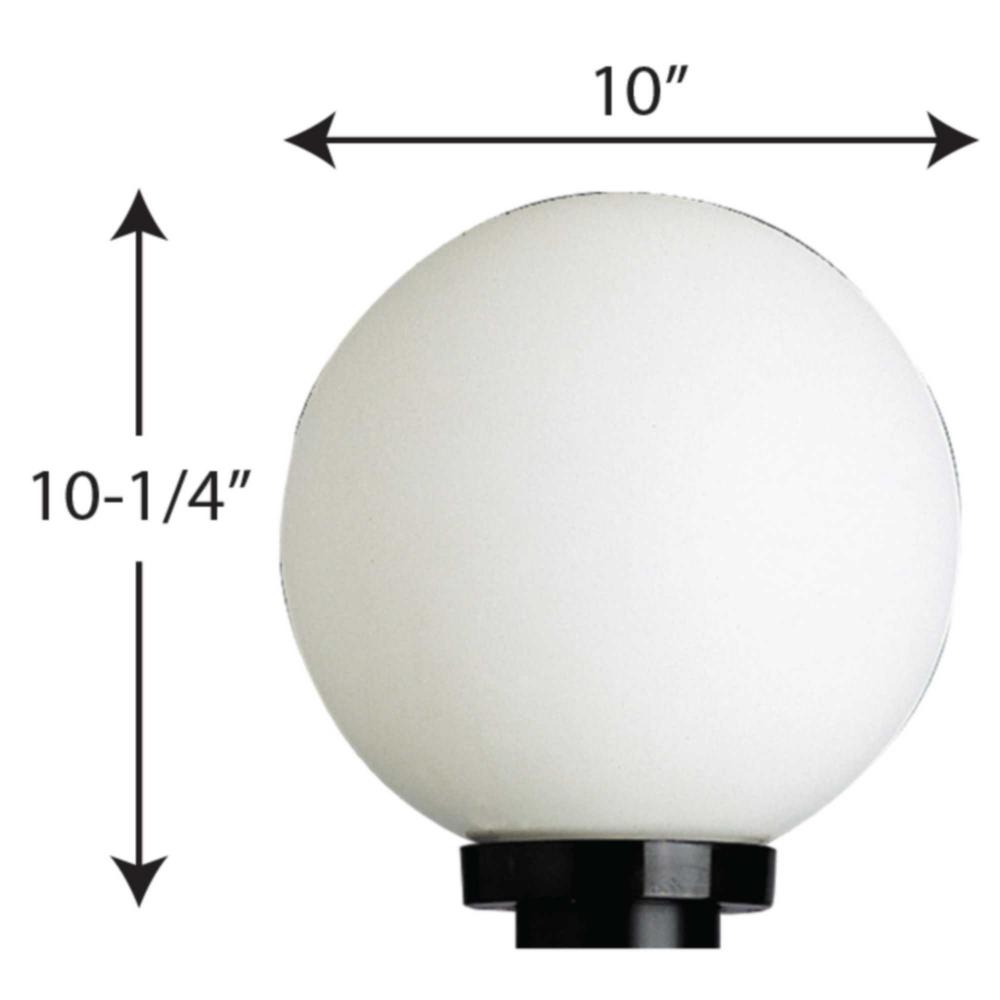 Complete post lantern featuring a white shatter-resistant 10 inch acrylic twist-lock globe with a black fitter.