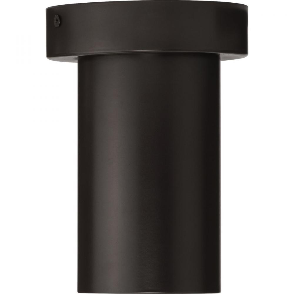 The Surface Mount Cylinder has a clean, modular style and a swivel head design that casts crisp, multi-directional light, ideal for use as a downlight to add clean architectural styling to a space. This low-profile fixture is adjustable and can be used as a standard downlight, accent light, wall wash or sloped ceiling light. Uses one medium based socket A19 or PAR 20 lamps, delivering a general ambient or a focused light output. Easy installation to a standard electrical junction box. Constructed of durable, corrosion-resistant aluminum coated in a mellow antique bronze finish, with a damp location rating for indoor and outdoor use. .