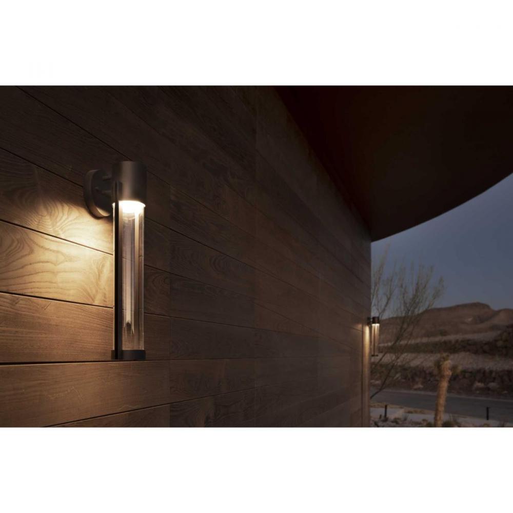 The Z-1030 integrated LED outdoor wall lantern brings instant style to contemporary exteriors. Coated in a crisp textured black finish, the architecturally inspired frame holds a clear glass diffuser that elevates the look of modern exteriors while casting bright light for nighttime visibility and safety.