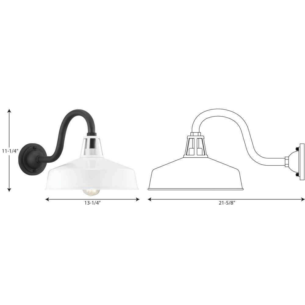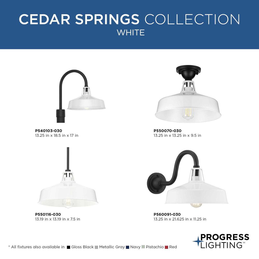 A fun take on the traditional warehouse shade, the Cedar Springs Wall Lantern can be a stylish addition to any indoor or outdoor space. Offered in a generous size and featuring a black gooseneck arm style and white shade, this classic light fixture will upgrade any farmhouse or transitional style setting. Dark Sky Friendly.