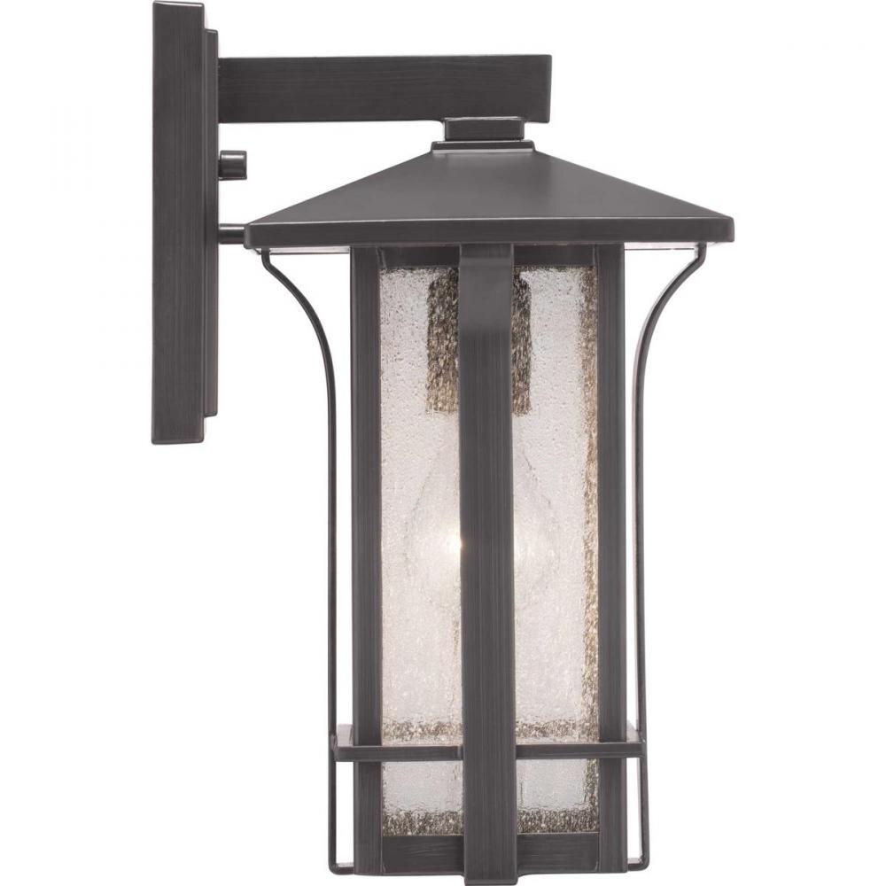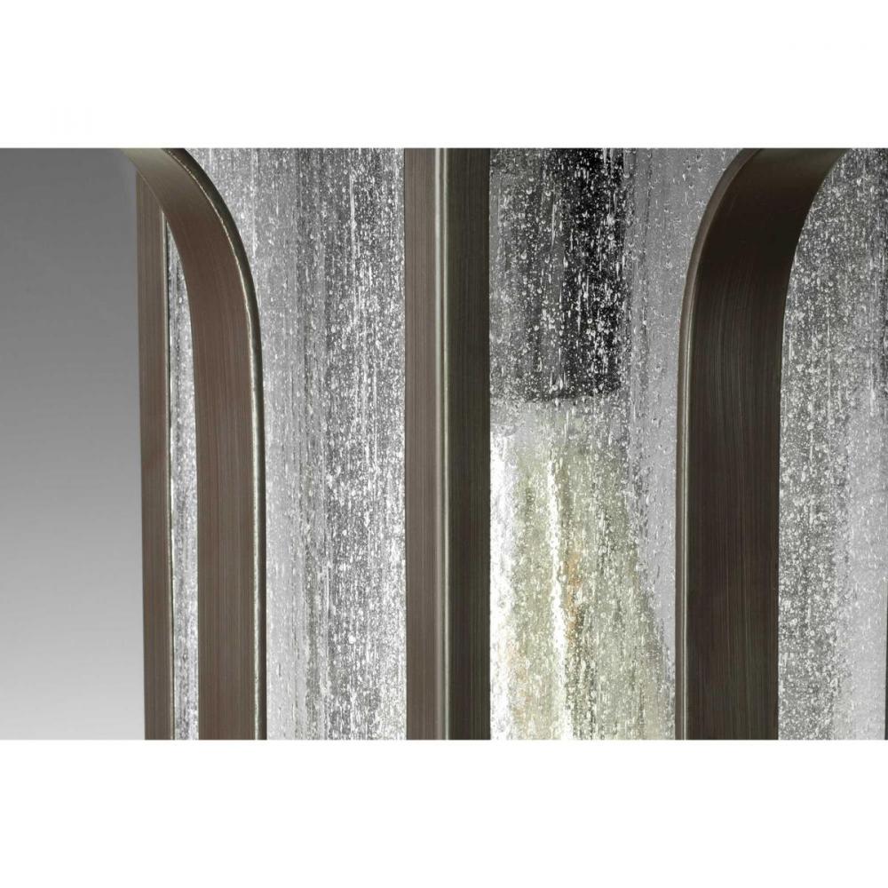 The Cullman Collection outdoor small wall lantern delivers dramatic scale with Craftsman appeal. Bold and linear details in an Antique Bronze finish highlight clear seeded glass. Ideal for spacious Modern architecture settings.