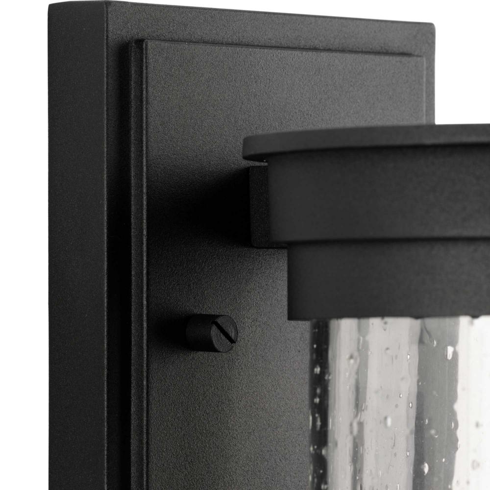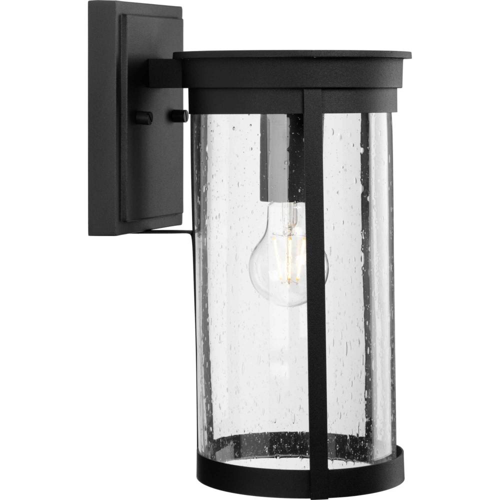 The Belden Large Wall Lantern is defined by crisp linear segments encircling a clear seeded glass diffuser that casts a beautiful glow to porches, patios and outdoor living areas. Classic and contemporary, the design has understated elegance and modern appeal.Its clean circular silhouette is coated in a crisp black finish.