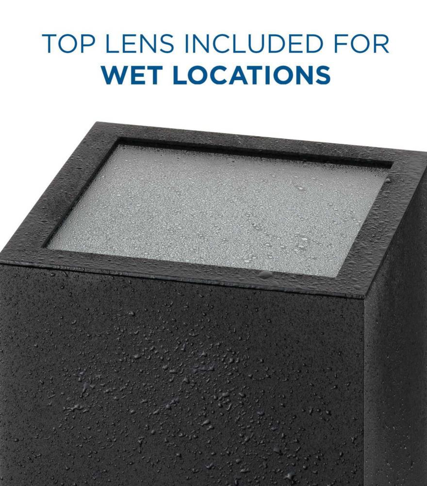 This stylish, sleek 6 in. square cylinder provides an elegant and versatile solution for your outdoor lighting needs. A wet-location rated lens is included, making the fixture ready for wet-location use right out of the box. Uses two medium base bulbs (sold separately). The light sources direct light up and down and offer beautiful, glare-free illumination.