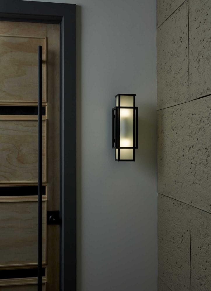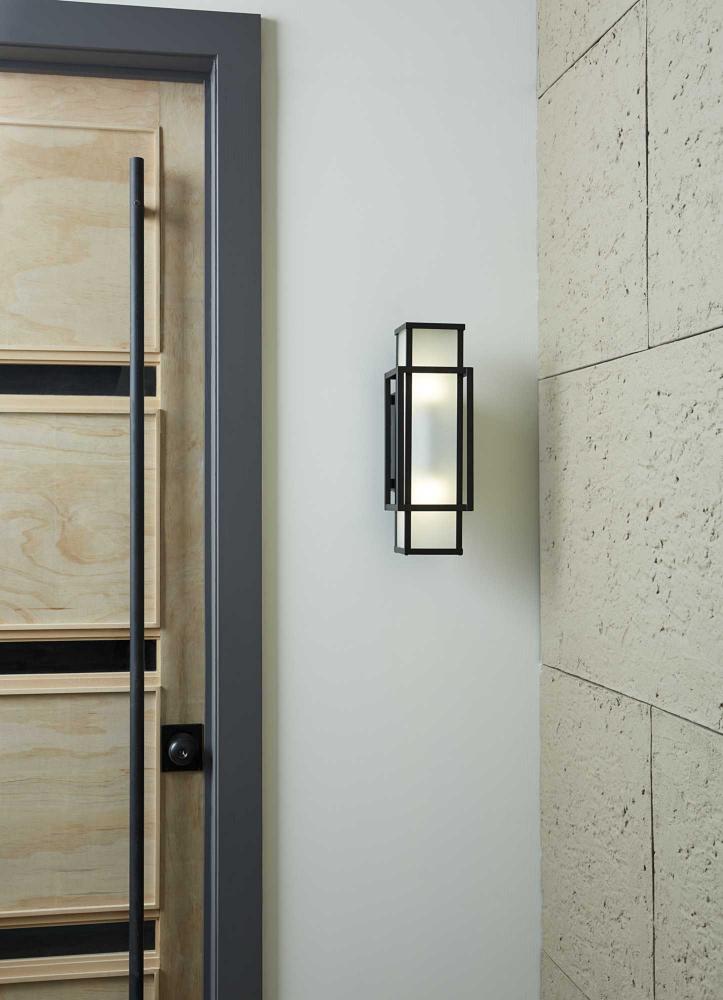 Crisp lines and sharp angles define the sleek silhouette of the Unison Collection. Interconnected rectangles finished in crisp matte black holds etched, seeded glass diffusers that deliver a mellow glow. This elegant wall lantern makes a grand statement at a front entrance, patios and porches or inside in hallways, foyers and other rooms in contemporary, modern craftsman and modern farmhouse homes. It is cULus wet location listed for use where water may be present, with a one-year warranty to guarantee your complete satisfaction. Progress Lighting products are designed for exceptional quality, reliability, and functionality.