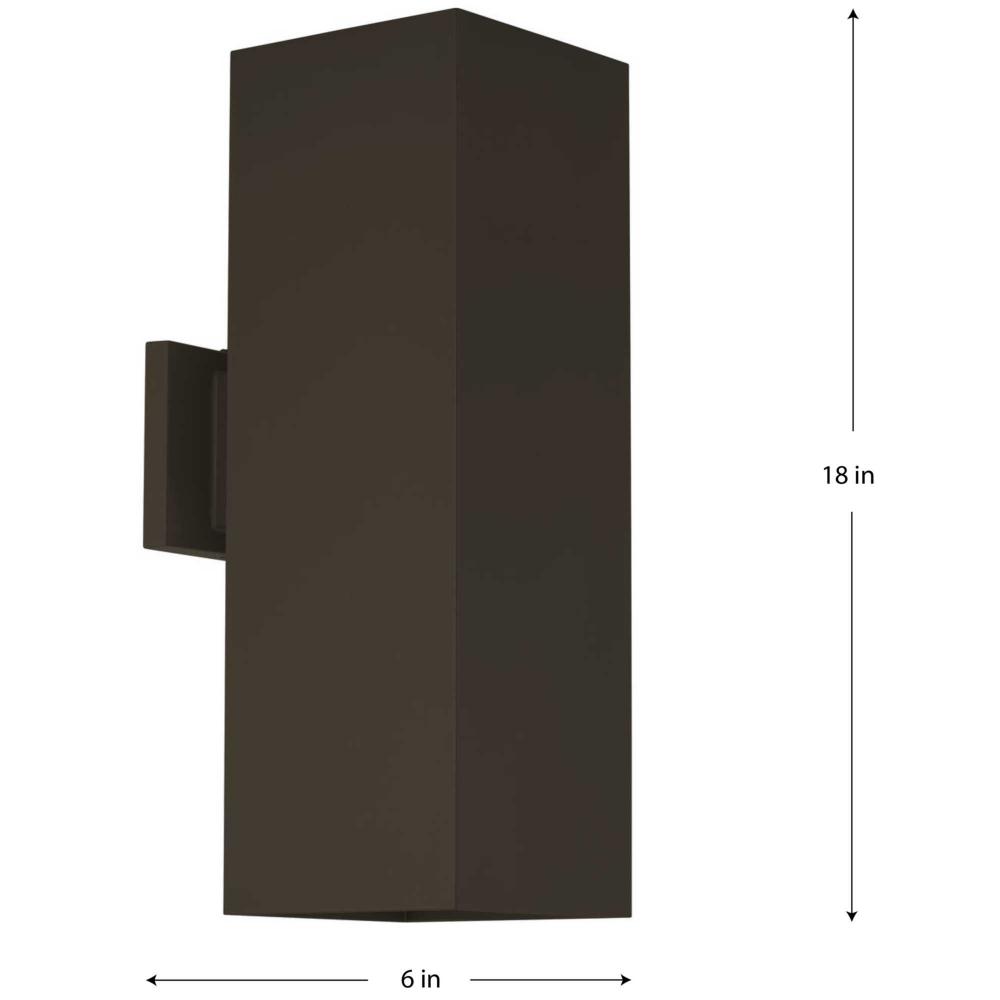 The Square outdoor wall lantern has a clean, modular design is ideal for contemporary settings. Composed of opaque, square panels, crisp light is cast dramatically from the top and bottom of the fixture.Coated in a antique bronze finish, Square brings a clean style to modern architecture. Uses Two 250w PAR-38 or 150w BR-40. Wet location listed when used with P860047 top cover lens (sold separately).