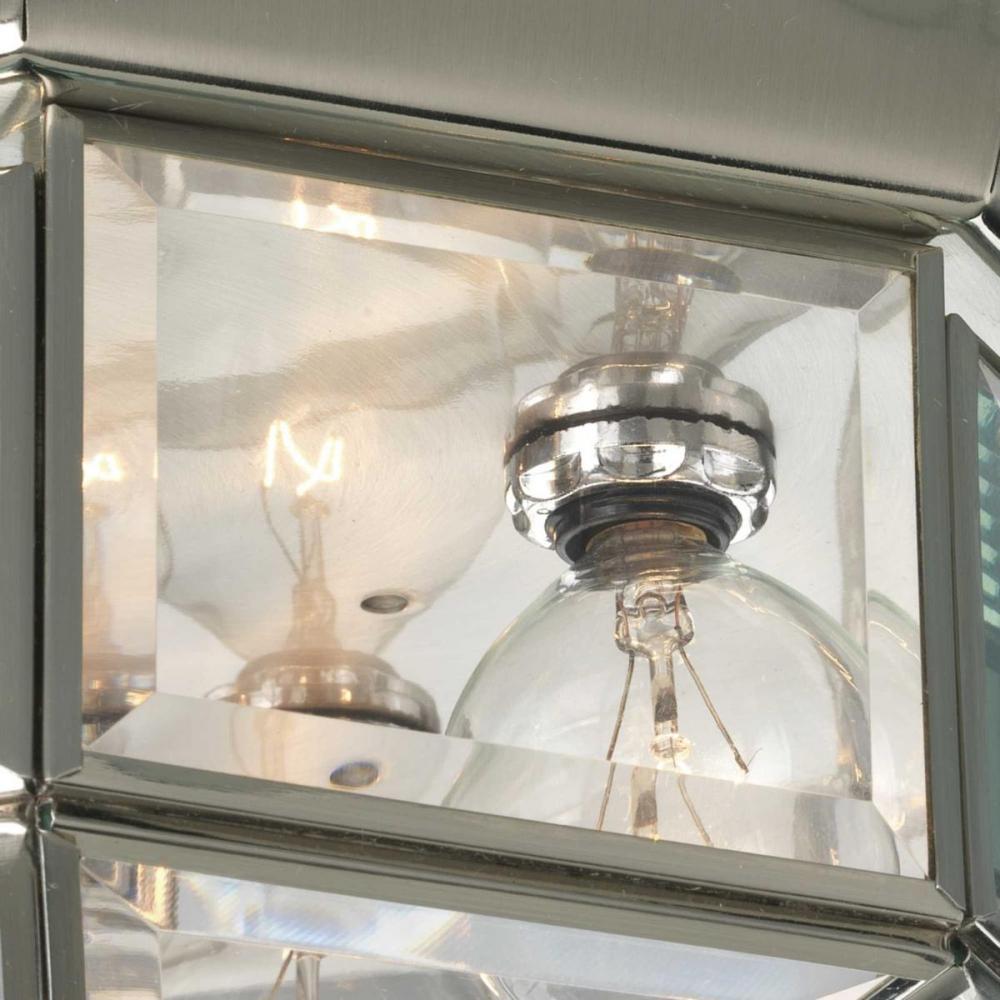 Four-light octagonal close-to-ceiling fixture with clear, bound beveled glass. Solid brass construction. G-lamps recommended. Traditional styling perfect for halls, closets, porches, laundry rooms, bedroom. Brushed Nickel finish.