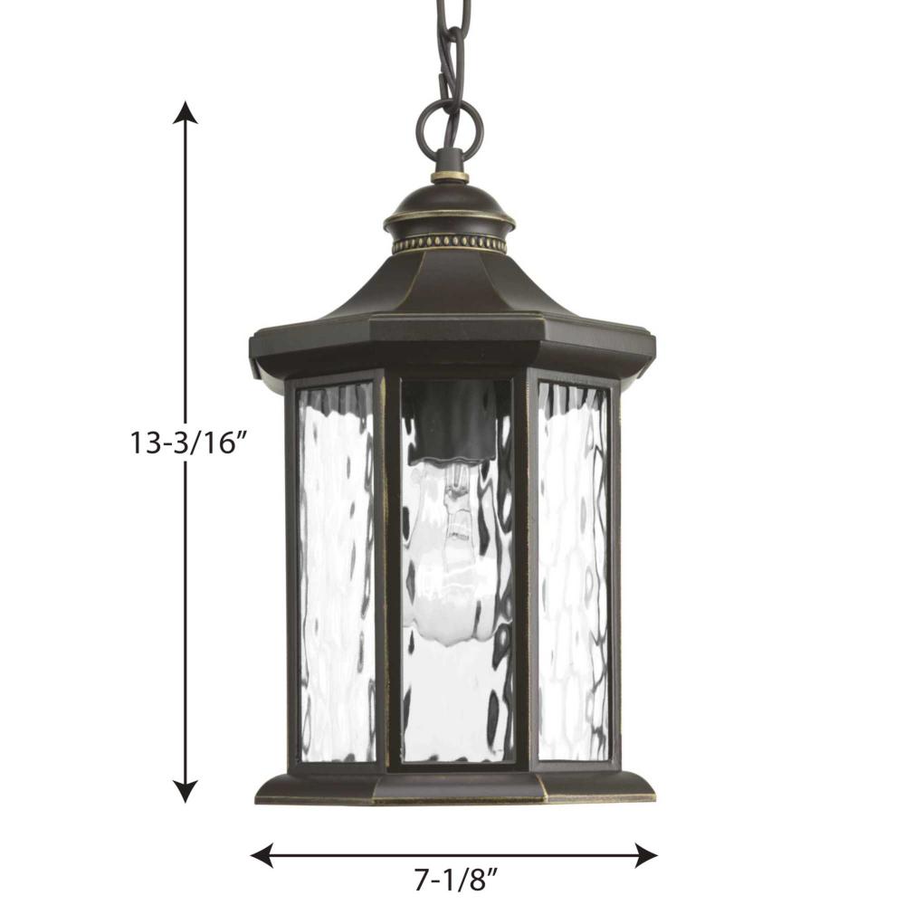 The one-light hanging lantern in the Edition collection features distinctive octagonal shape for classic styling. Clear water glass elements are accented by a Antique Bronze finish. Die-cast aluminum construction with a powder coat finish makes this a durable style for updating a home's curb appeal.