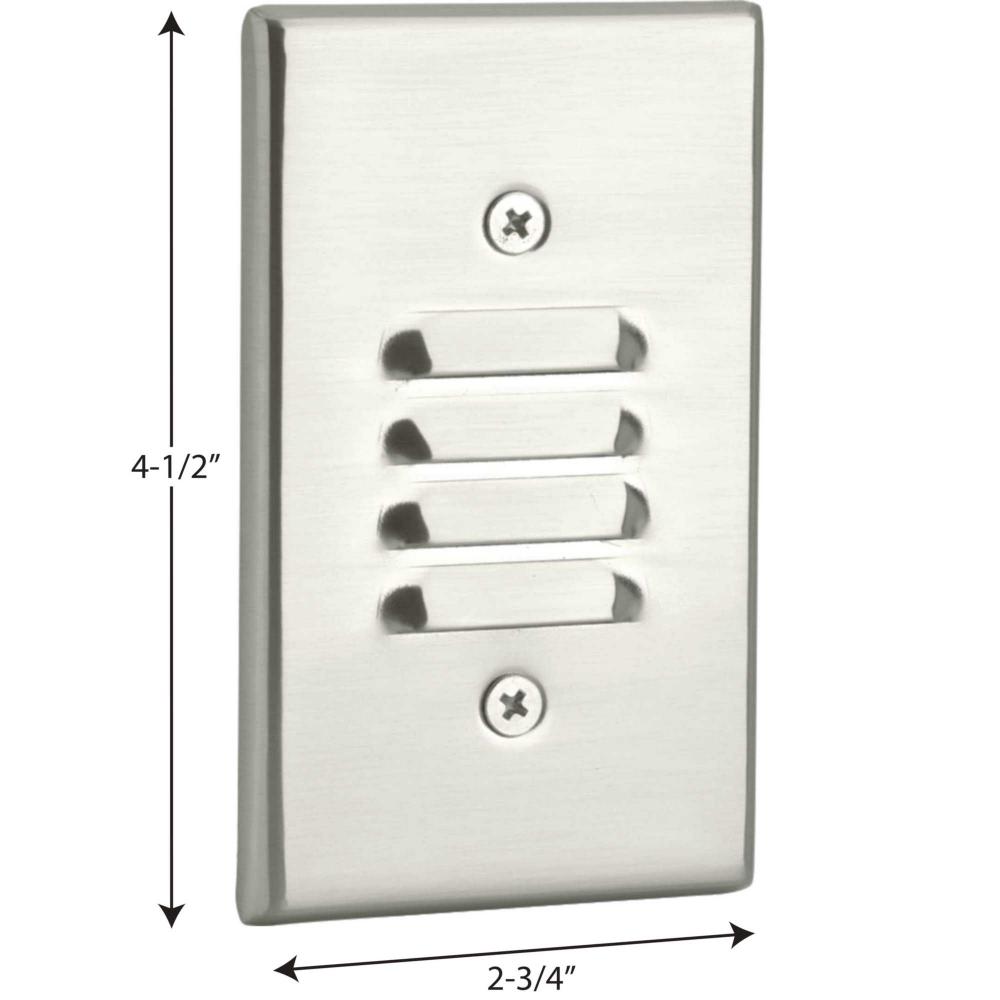 Both vertical and horizontal louver design face plates included;Heavy Steel construction;Brushed Nickel finish enhances modern interiors;Horizontal mounting on a single gang recessed wall box (2" min. clearance);Delivers 5.5 (horizontal face plate)/7.5