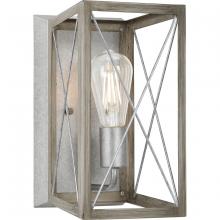 The Briarwood collection features a classic pattern commonly found on barn or farmhouse doors and gates. The simple geometric form features a faux-painted wood enclosure to frame vintage-style light bulbs. A rich Oak and Antique Bronze finish combination. One-Light wall sconce.