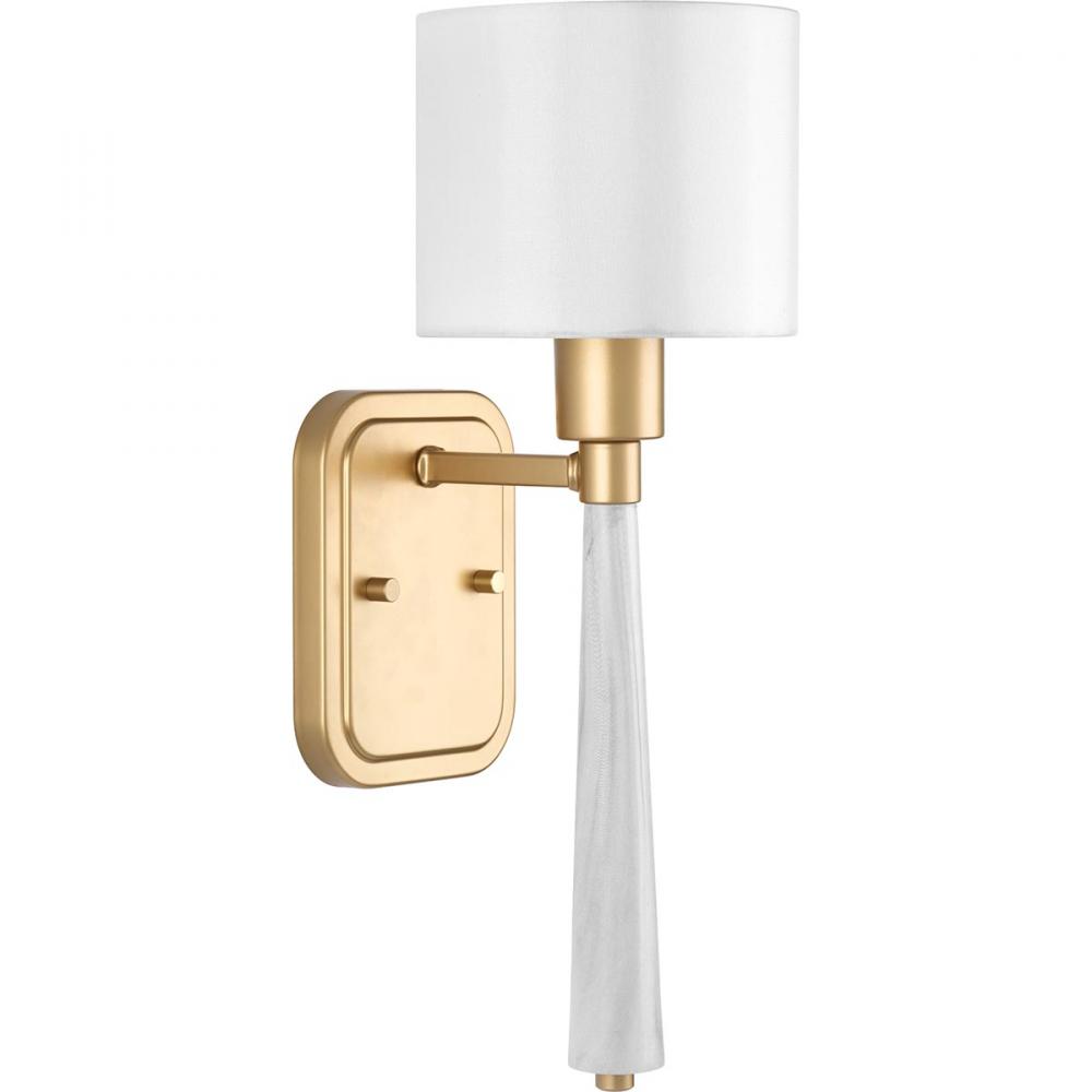 Faux white marble accents enhance an elegant gold-tone frame;White silk shades complement gold accents to create a statement-making style;Wall bracket uses one 75W medium base lamp (sold separately);Progress Lighting Design Series, a collection offering fa