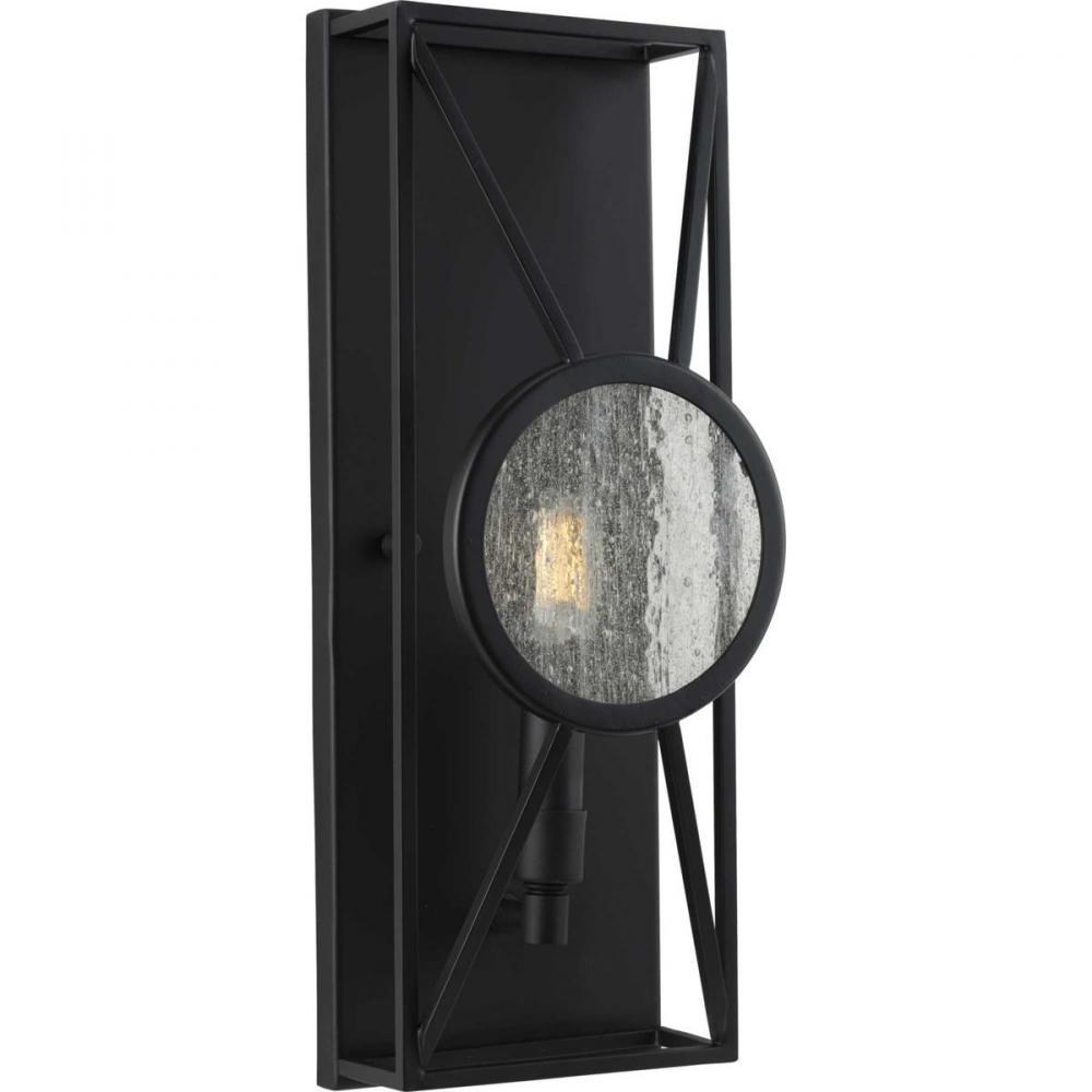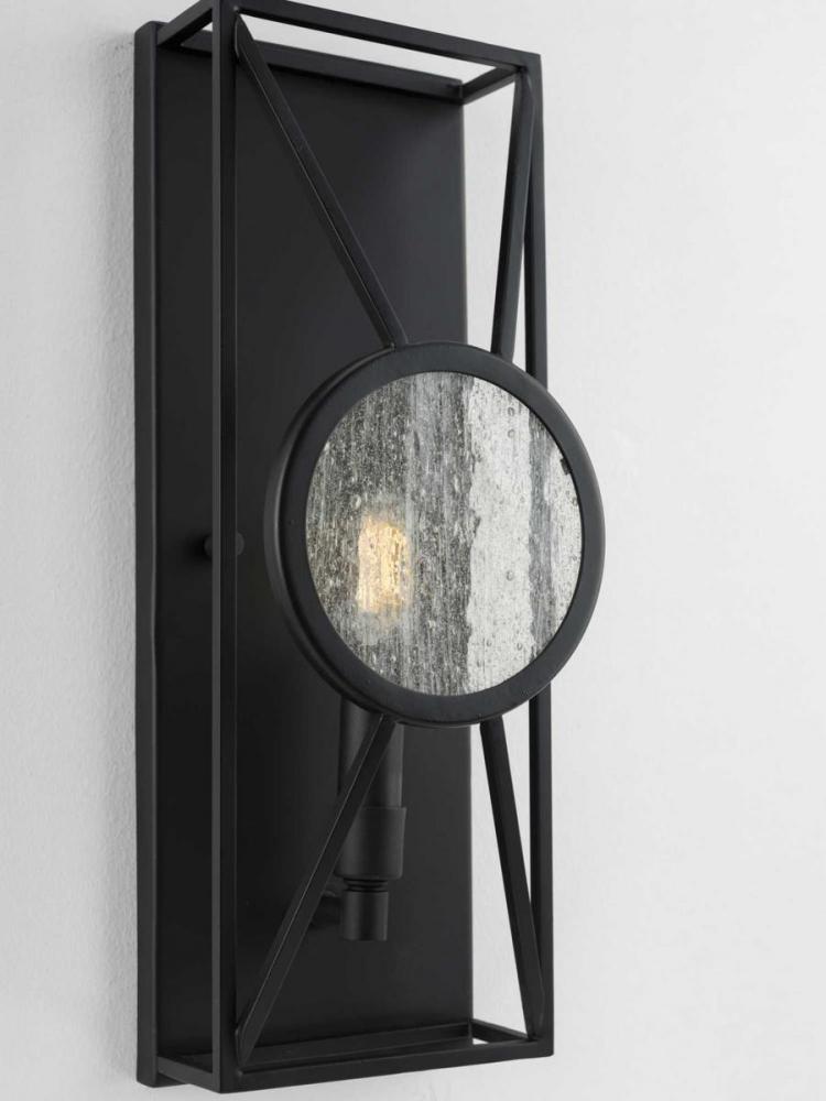 Experience the sense of shelter, warmth, and protection offered by the mountain modern glow of this wall sconce. Let wandering eyes hungry for a satisfying lighting experience satiate their appetites as their gaze feasts upon the artistic yet playful tic-tac-toe pattern intricately weaved into the matte black frame. A signature seeded glass pane fosters a gazing window design that grants the light fixture a rustic, modern cabin vibe.