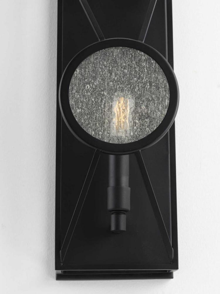 Experience The Sense Of Shelter, Warmth, And Protection Offered By The Mountain Modern Glow Of This Wall Sconce. Let Wandering Eyes Hungry For A Satisfying Lighting Experience Satiate Their Appetites As Their Gaze Feasts Upon The Artistic Yet Playful Tic-Tac-Toe Pattern Intricately Weaved Into The Matte Black Frame. A Signature Seeded Glass Pane Fosters A Gazing Window Design That Grants The Light Fixture A Rustic, Modern Cabin Vibe.
