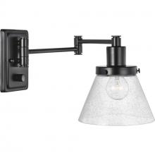 Enjoy focused task lighting with the industrial demeanor of this one-light swing arm wall bracket. A clear seeded glass shade is ready to provide you with focused task light wherever illumination is called upon. The light fixture's signature adjustable arm is coated in a vintage brass finish and makes this wall light a favorite choice for when you want to read your favorite novel before bed.