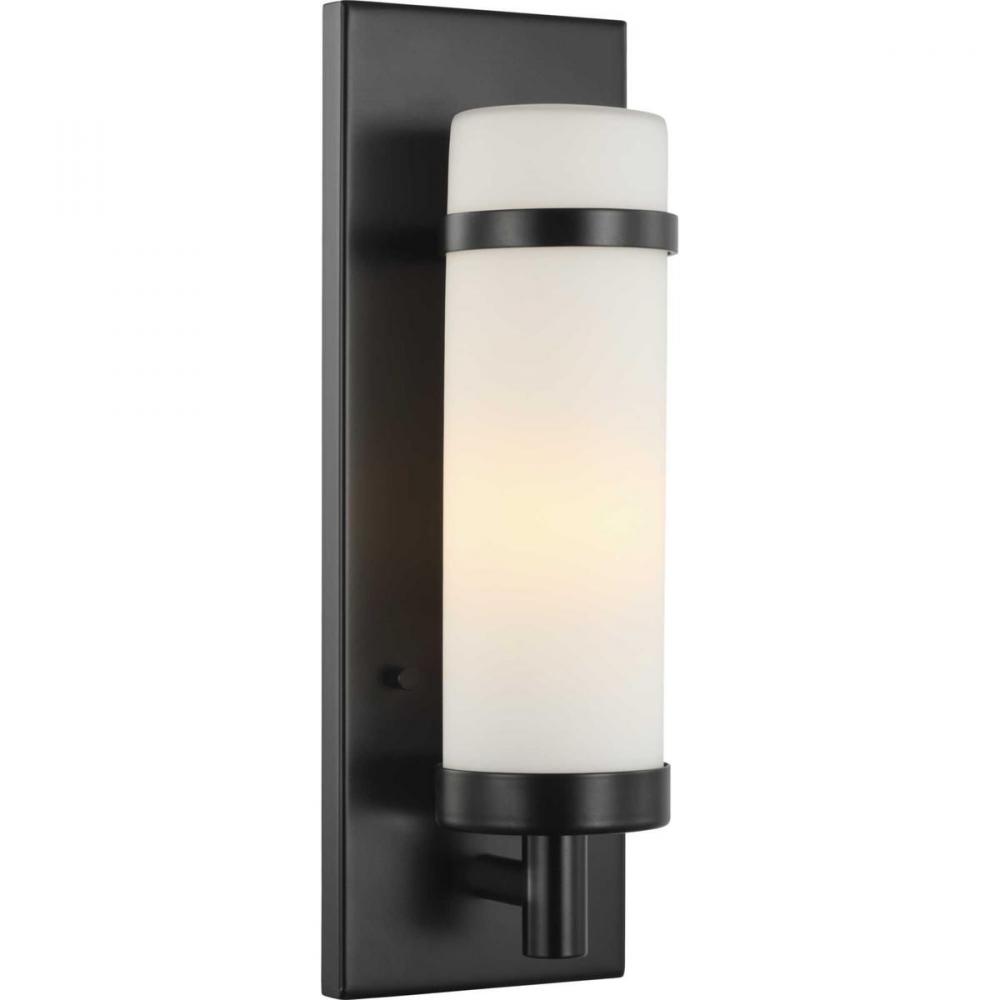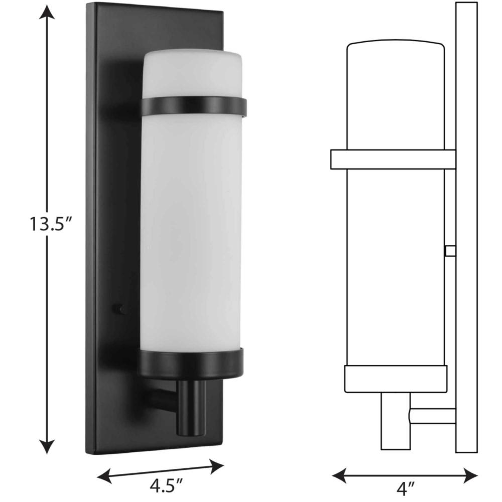 Ease yourself into a state of complete bliss and relaxation under the luxurious glow of this wall sconce. A stunning, cylinder-shaped etched opal glass diffuser held in place by a thin metal bar recalls visions of elegant candlesticks. The diffuser sits on top of a pedestal-like light base attached to a beautiful black backplate.