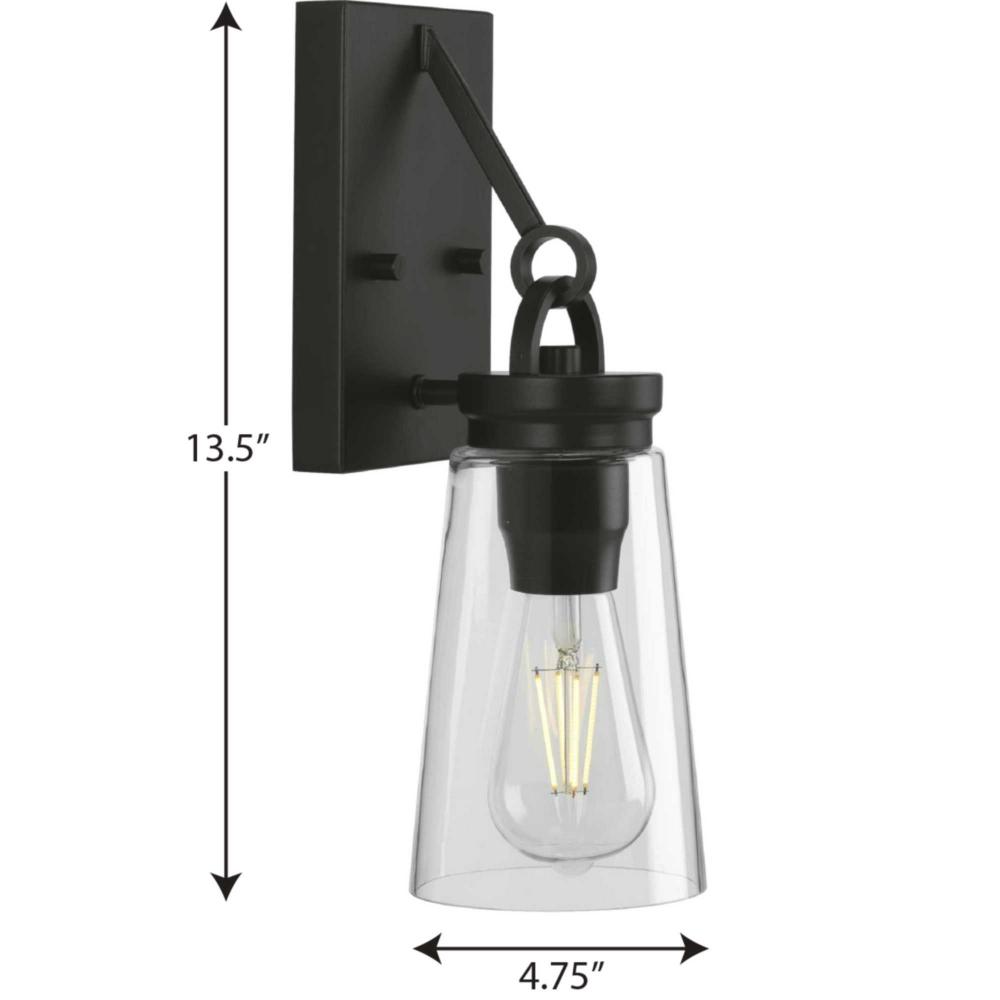 Application: Inspired by traditional post-and-beam construction, the Stockbrace Collection 1-Light Matte Black Clear Glass Farmhouse Wall Light ideal for any entryway, hallway, foyer, bedroom, sitting room, living room, or bathroom.;Styles: Perfect for mod