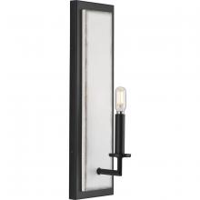 Clean, modern lines combine with rustic elements in the Galloway Collection. A lightly distressed grey washed oak panel highlights a rectangular backplate finished in subtle brushed nickel. A brushed nickel column holds a candelabra light that glows brightly to illuminate spaces in a casually elegant style. The larger scale and elegant look of the backplate's faux wood-finished panel makes this wall bracket the perfect accompaniment for great rooms, bedrooms and dining rooms.