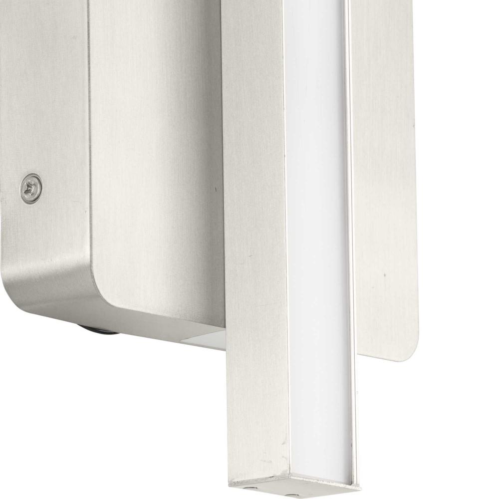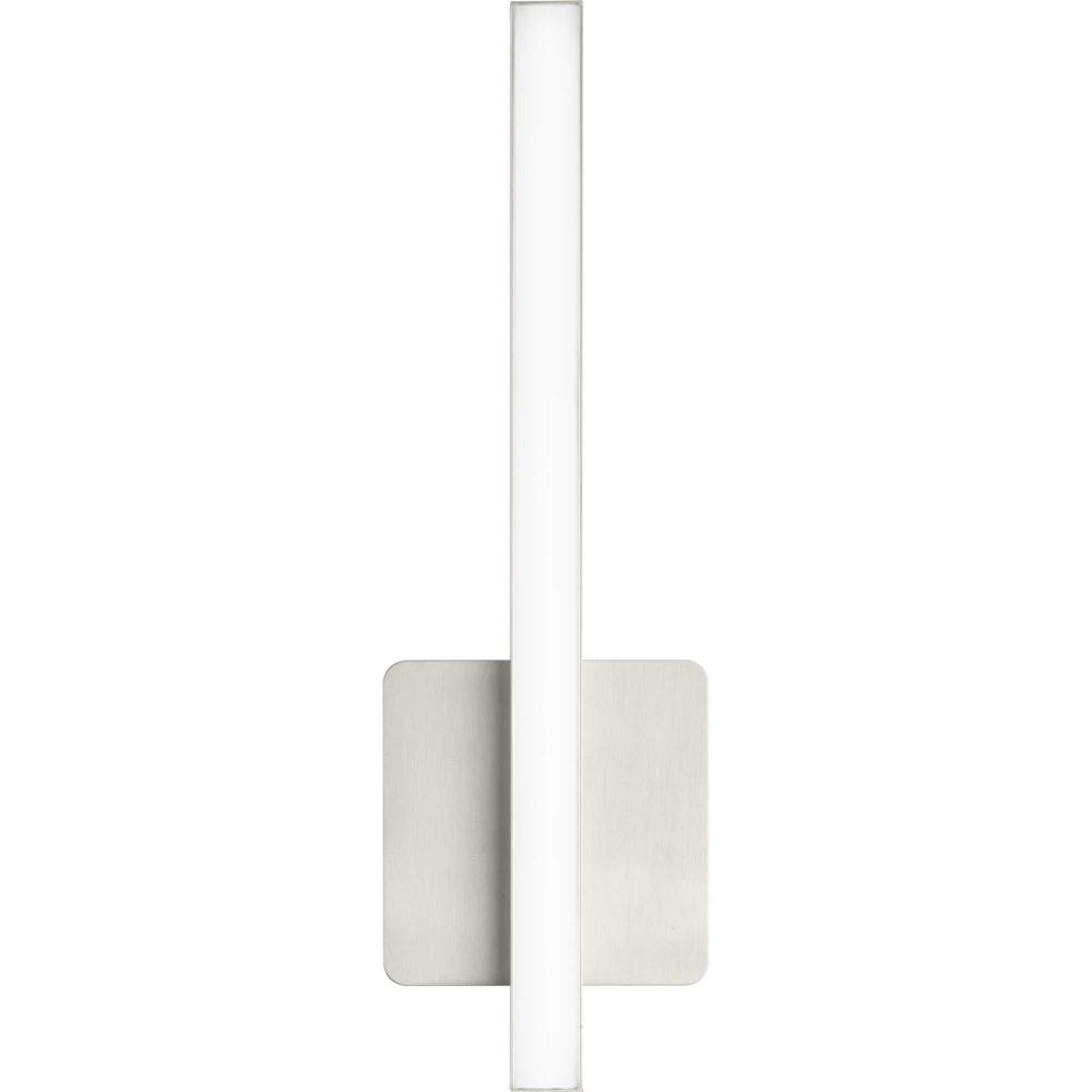 The Phase 4 Collection Small LED Linear Vanity Light features color selectable technology and a sleek and minimal composition. A smooth square backplate finished in soft brushed nickel anchors the fixture, supporting a slim rectangular acrylic shade that creates a soft, uniform and energy-efficient light at 3000K, 4000K or 5000K. This versatile luminaire can be mounted as a wall sconce or as a vanity light above sinks and vanities, lending its surroundings a tailored touch. The bath light's versatile design is ideal for any bathroom in contemporary or modern commercial or residential settings. Progress Lighting products are designed for exceptional quality, reliability, and functionality.