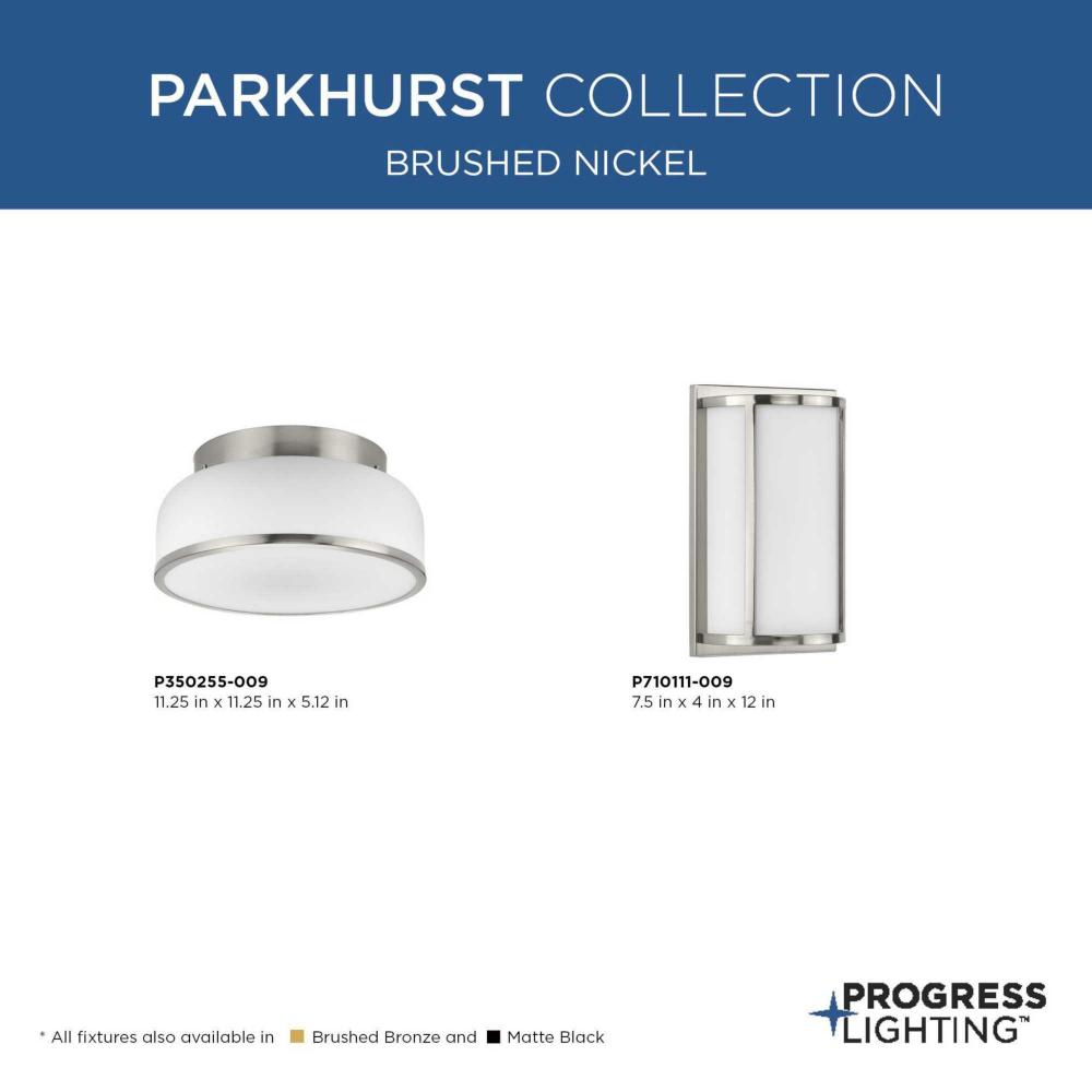 Graceful curves and bold angles combine to create a softly structured look in Parkhurst. An airy frame coated in soft brushed nickel defines the form and delivers unobstructed layers of light though etched glass shades. The visual appeal of the wall sconce will offer a subtle and elegant silhouette over home theaters, bathrooms, or bedrooms in new traditional and contemporary interiors.