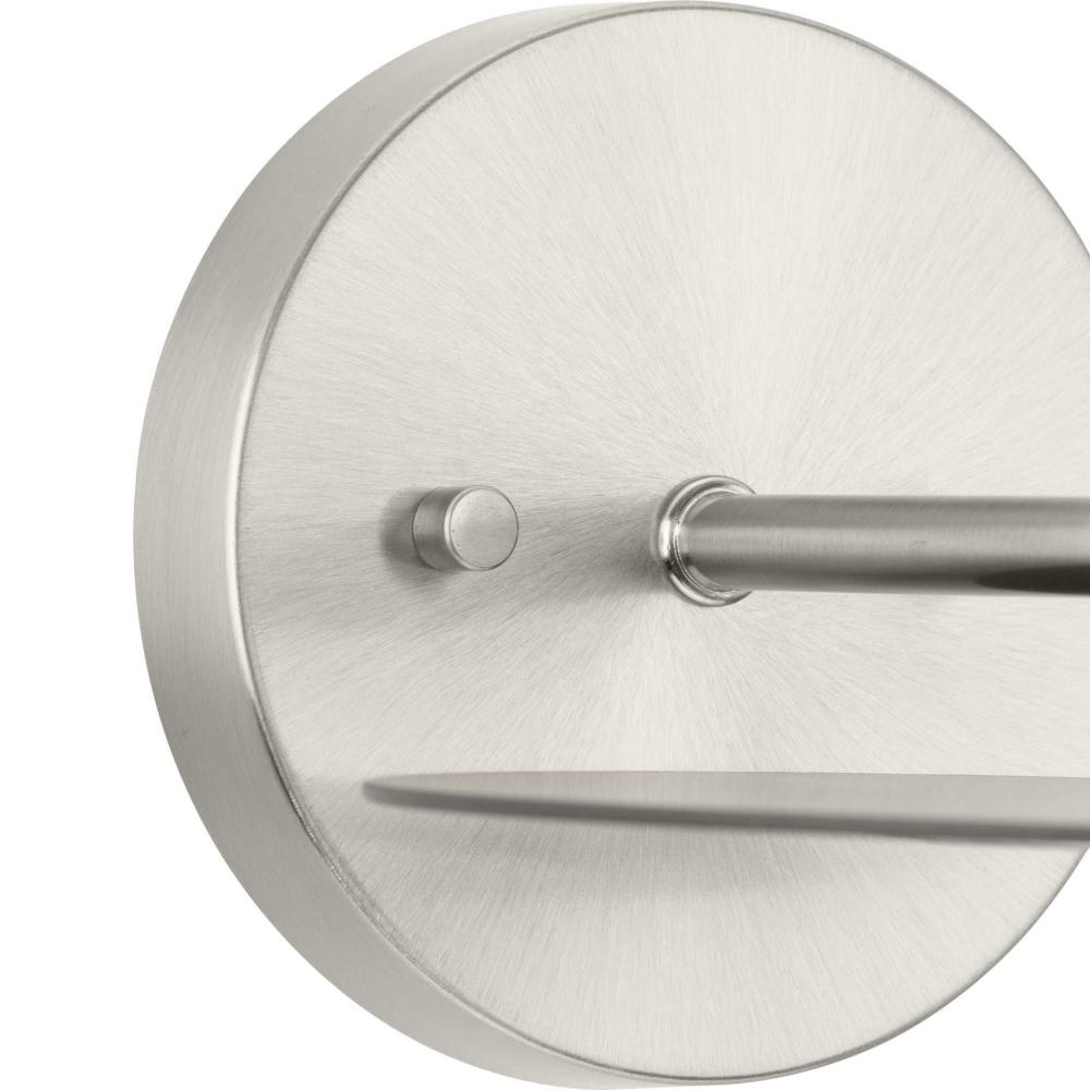 The fixture's dual-toned finish features a pairing of brushed nickel and painted graphite discs
