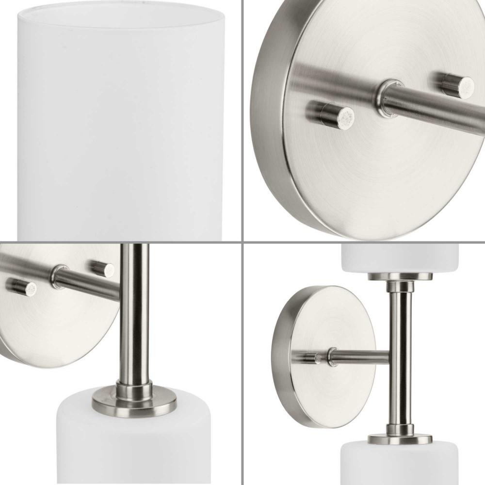 The fixture is coated with a subtle brushed nickel finish, offering an elegant contemporary design to transitional settings