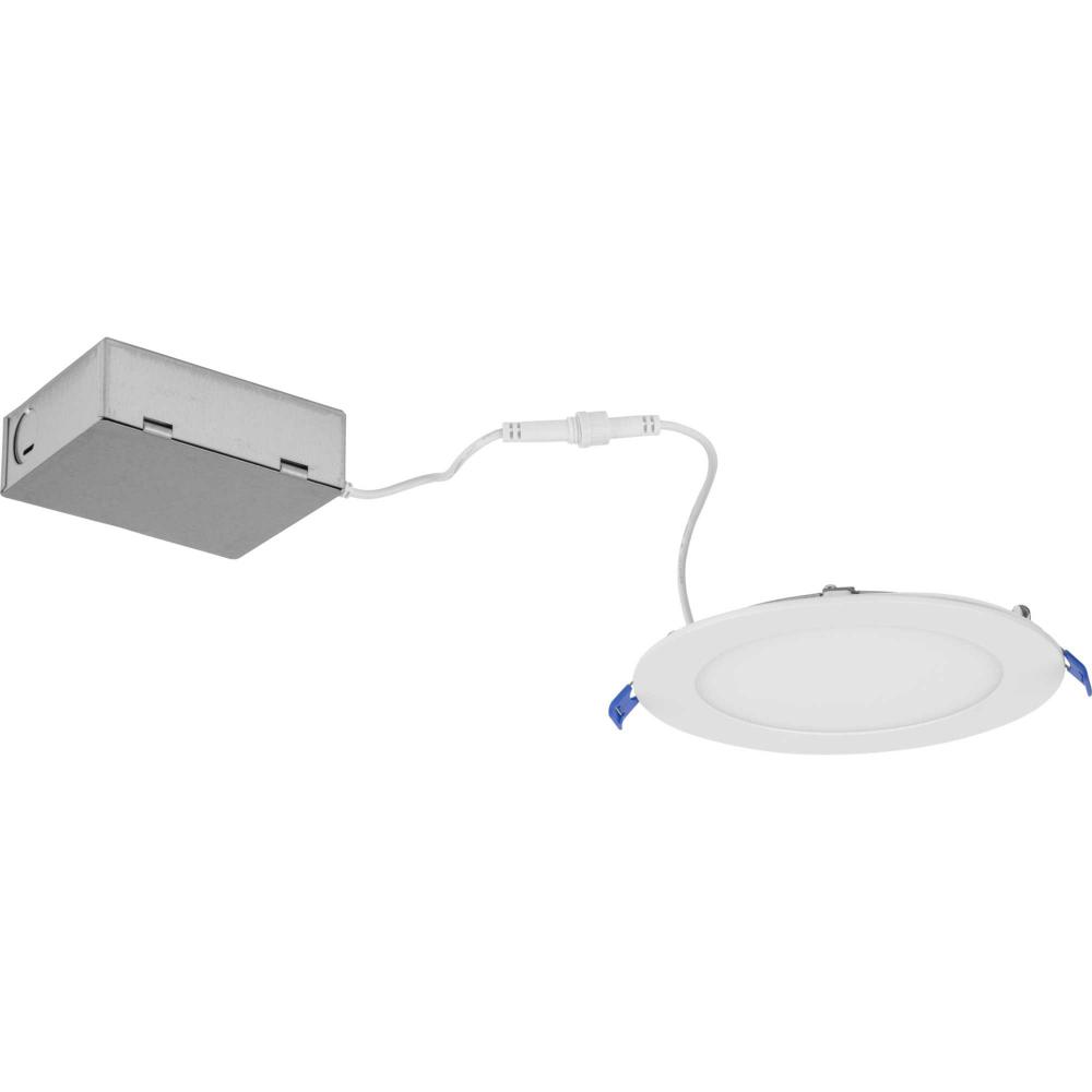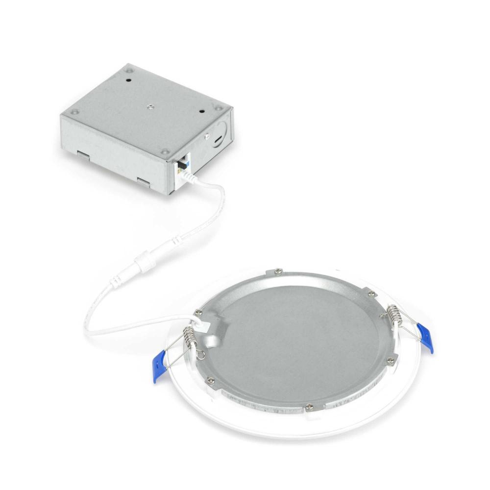 Innovative, 5-CCT selectable LED technology and a slim profile make the 6-inch Everlume Recessed Downlight an ideal downlight for new construction and remodel projects. Smooth, even edge-lit illumination in a choice of 2700K, 3000K, 23500K, 4000K or 5000K color temperature settings is delivered through a polycarbonate lens. The 12W, 925 integrated LED light source is dimmable using ELV or TRIAC dimmers. Its aluminum trim is finished in crisp Satin White that blends quietly into its surroundings. A detached J-Box, provided with quick connects, eliminates the need for an additional recessed housing. The trim features a gasket to close off the ceiling opening. Additionally, spring clips ensure a secure flush mount to the ceiling surface. Everlume recessed LED is easily installed into 6-inch openings in low clearance, new construction and remodel, ceiling applications. This versatile downlight is JA8-2019 Title 24 Rated, and cETLus Wet Listed for use in areas where water may be present.