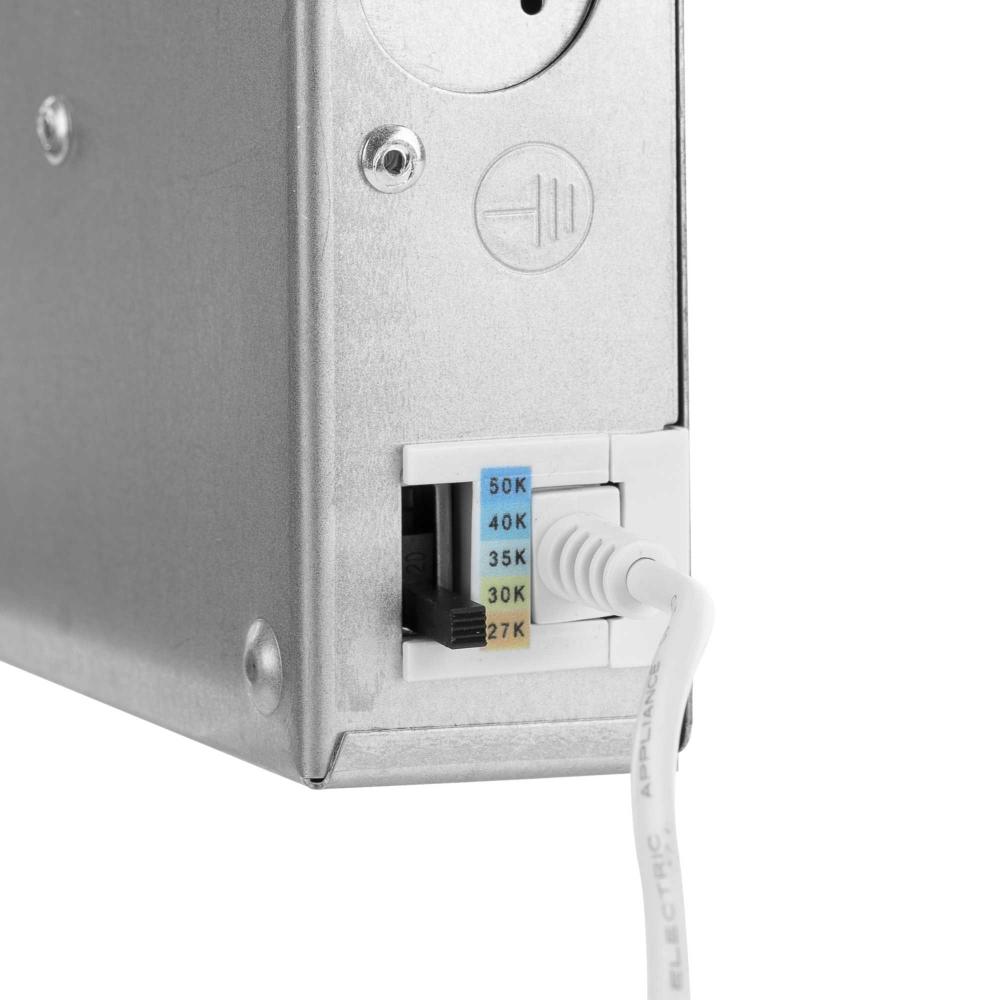 Smooth, even edge-lit illumination in a choice of 2700K, 3000K, 23500K, 4000K or 5000K color temperature settings is delivered through a polycarbonate lens. The 12W, 925 lumen integrated LED light source is dimmable using ELV or TRIAC dimmers