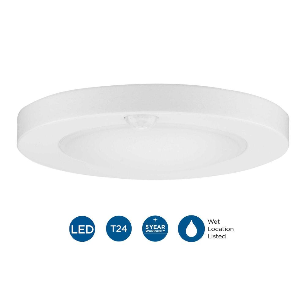 Illuminate your space with confidence and efficiency with the dual technology 7.75 inch Surface Mount LED Light, an intelligent lighting solution that combines motion-sensor technology with energy-saving design. This sleek disk light is activated when motion is detected from its built-in PIR (Passive Infrared) sensor. When darkness falls and motion is detected, it seamlessly illuminates the area. The integrated photocell ensures that the light only activates when ambient light levels are insufficient, preventing unnecessary energy consumption. Powered by innovative LED technology, this fixture emits a warm 3000K light with a high 90 CRI through a polycarbonate lens without harsh glare or dark spots. Choose a crisp Satin White to seamlessly match your interior decor.