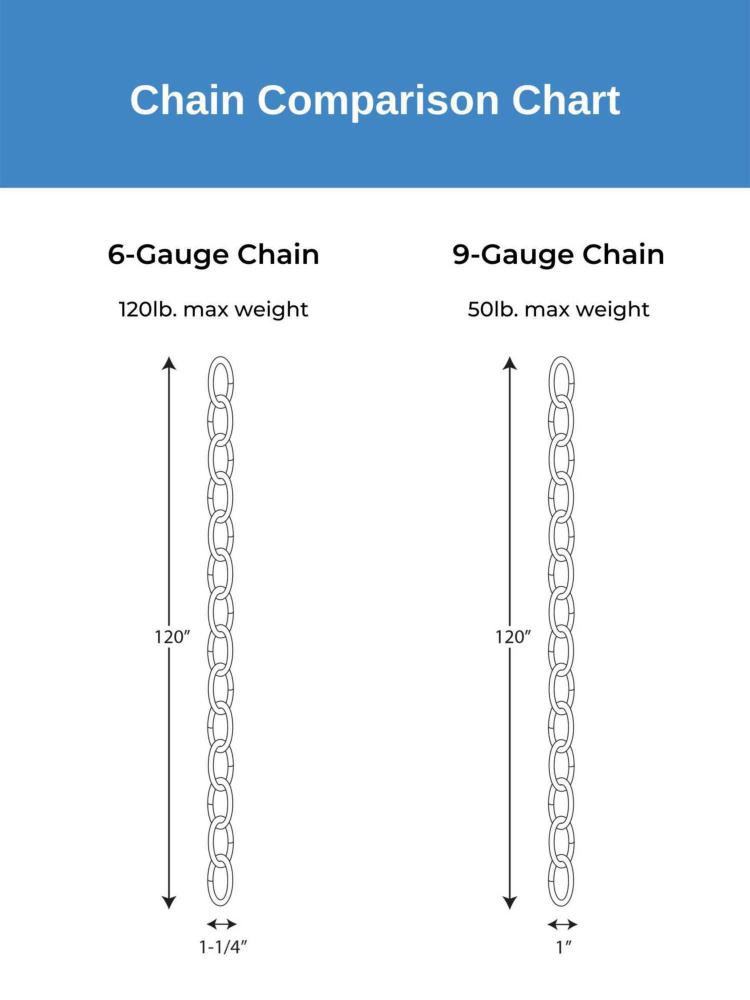 Customize your lighting design with this stylish and functional gauge chain. This solid chain permits installation of chain-hung fixtures on high ceilings. The chain is coated in a beautiful brushed bronze finish to match a variety of style settings. Maximum fixture weight is 50lbs.