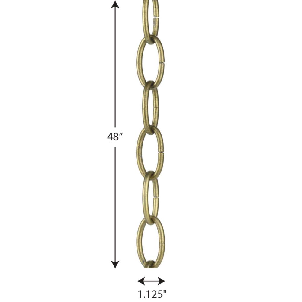 Customize your lighting design with the 48-Inch Distressed Brass Accessory Chain.;Perfect for a variety of style settings.;Coated in a distressed brass finish.;Constructed from steel to ensure a long product lifespan.;Measures 48-inch length.;Pairs with a